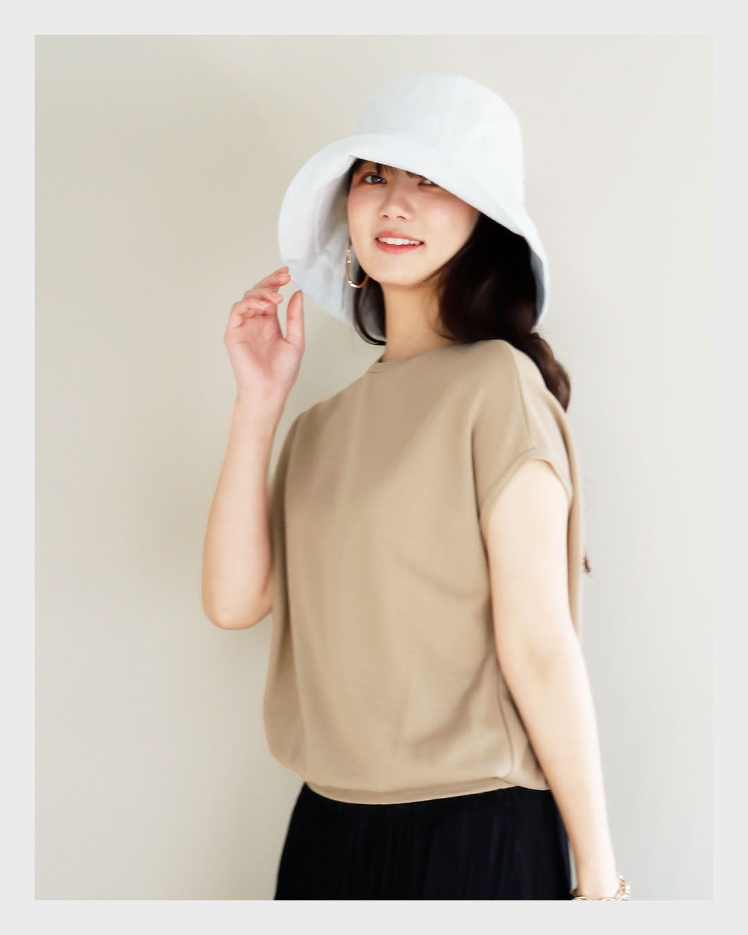 スッポリ深く被れて、つば広ハットであれば、小顔に見える効果があります。オシャレで小顔に見える帽子を選べば、お母さんも喜んでもらえると想います。