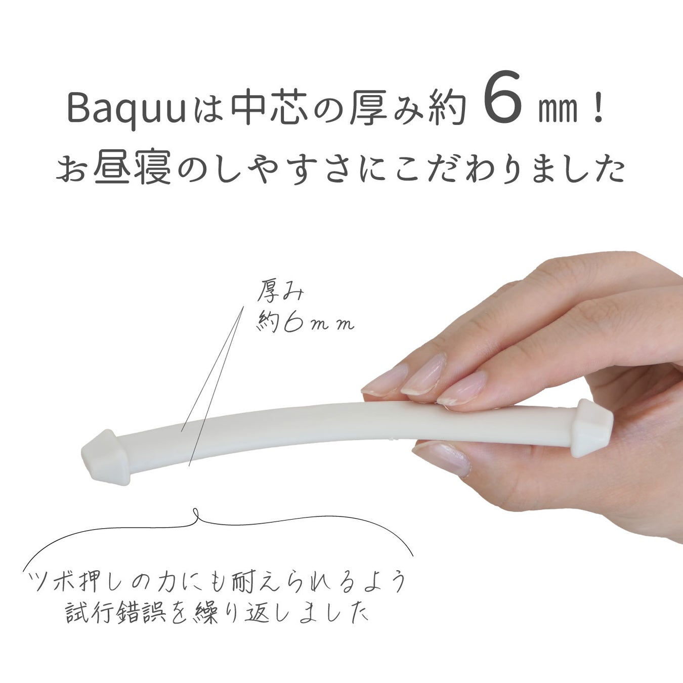 Baquuはお昼寝だけでなくリストレスト、ツボ押し、スマホスタンド、マッサージやリフレッシュができ、あなたの優秀なデスクの相棒に。