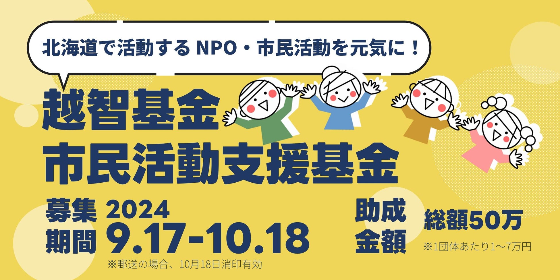 「市民活動支援基金」は、認定NPO法人となったことをきっかけとした基金再編時に設立された基金で、越智基金の後継基金として、道内NPO団体に小額・使途を限定せず助成します。