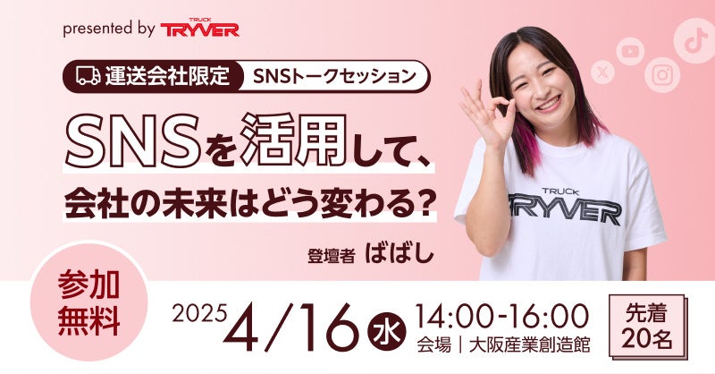 2025/4/16開催決定!トラガールの先駆者、大人気YouTuberばばしさんが登壇・運送会社限定SNSトークセッション presented by TRYVER