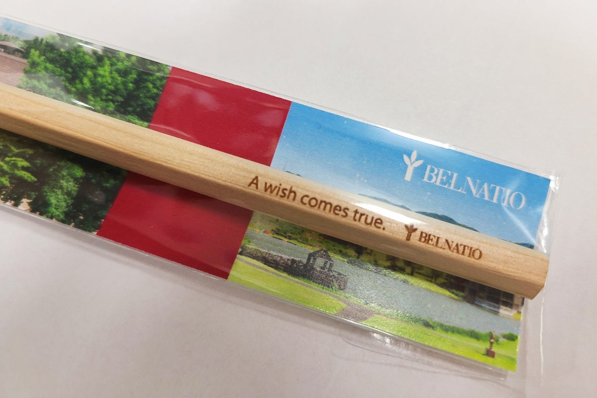 ベルナティオオリジナル鉛筆は、森を守る為に木の伐採を することで生じる間伐材を材料に福島県いわき市にある「磐城高箸」さまによって作られた「ヒノキ」の鉛筆です。当館ではこの特別な鉛筆をランドセルをご寄付いただいた方へ プレゼントしています。
