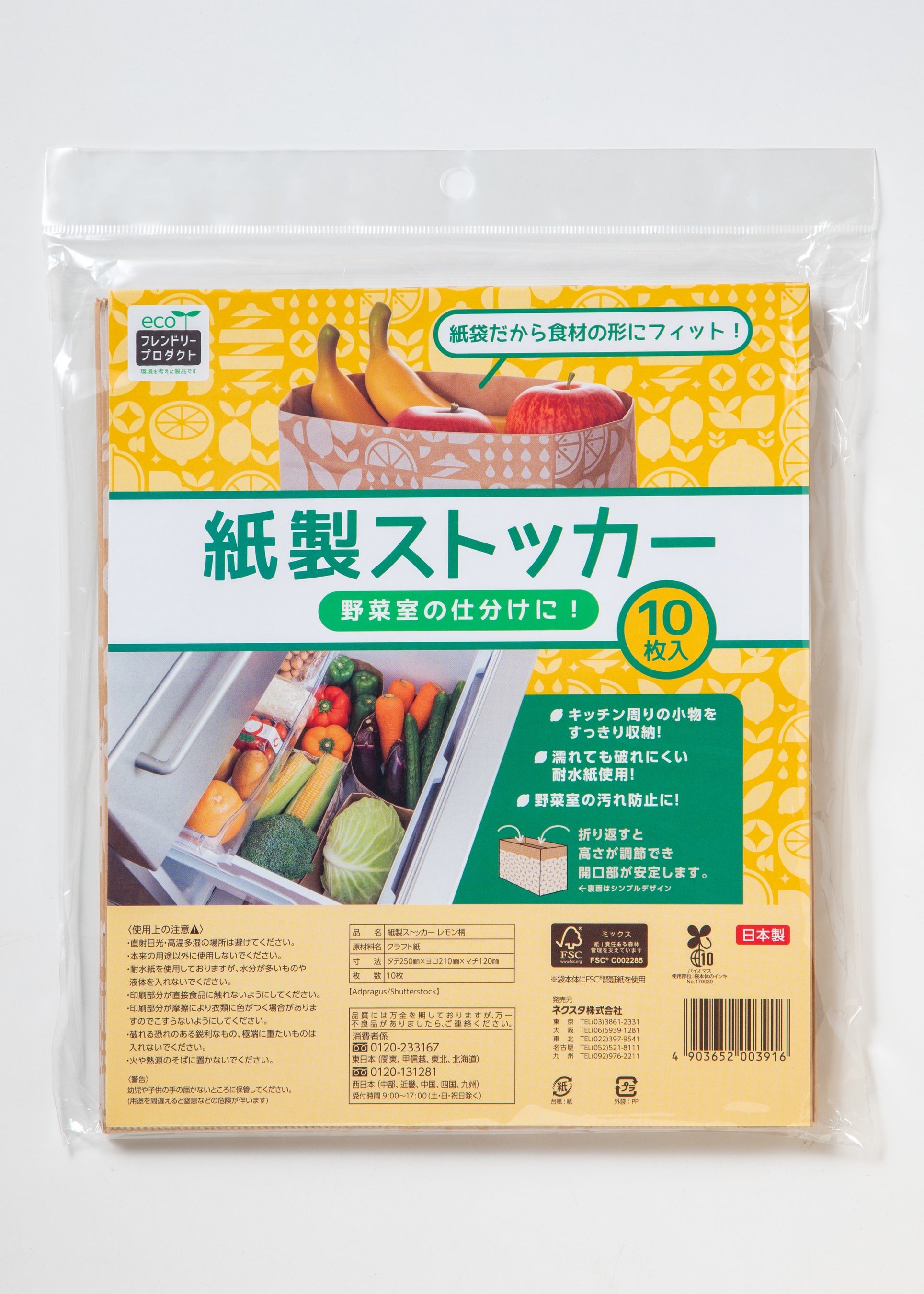 同カテゴリの製品はプラスチック素材を使用しているものが多い中、この「紙製水切りごみ袋」は脱プラスチックを推進するアイテムとなります。