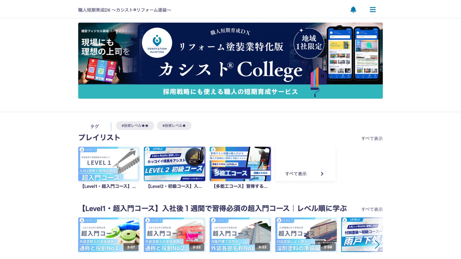 「カシスト®リフォーム塗装」は、リフォーム塗装業界に特化した職人の短期育成支援動画教育サービスです。基礎技術から応用技術までを網羅し、現場で即戦力となる職人を短期間で育成します。多言語対応により、母国語での学習をサポートします。受講はスマホ視聴ができ、いつでもどこでも学習可能。「カシスト®リフォーム塗装」は、リフォーム塗装業界における人材育成の新しいスタンダードを目指し、職人の未来をアシストします。