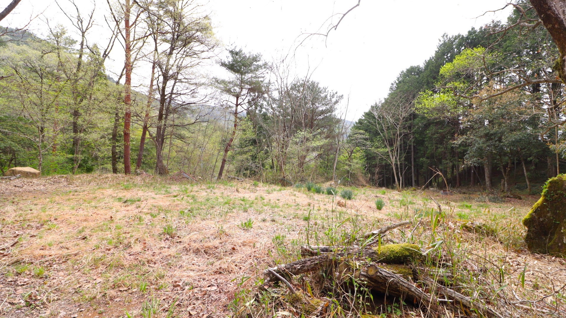 名古屋から車で90分。小川が流れている広葉樹林で、落ちている丸太は薪やブッシュクラフトに活用できます。
