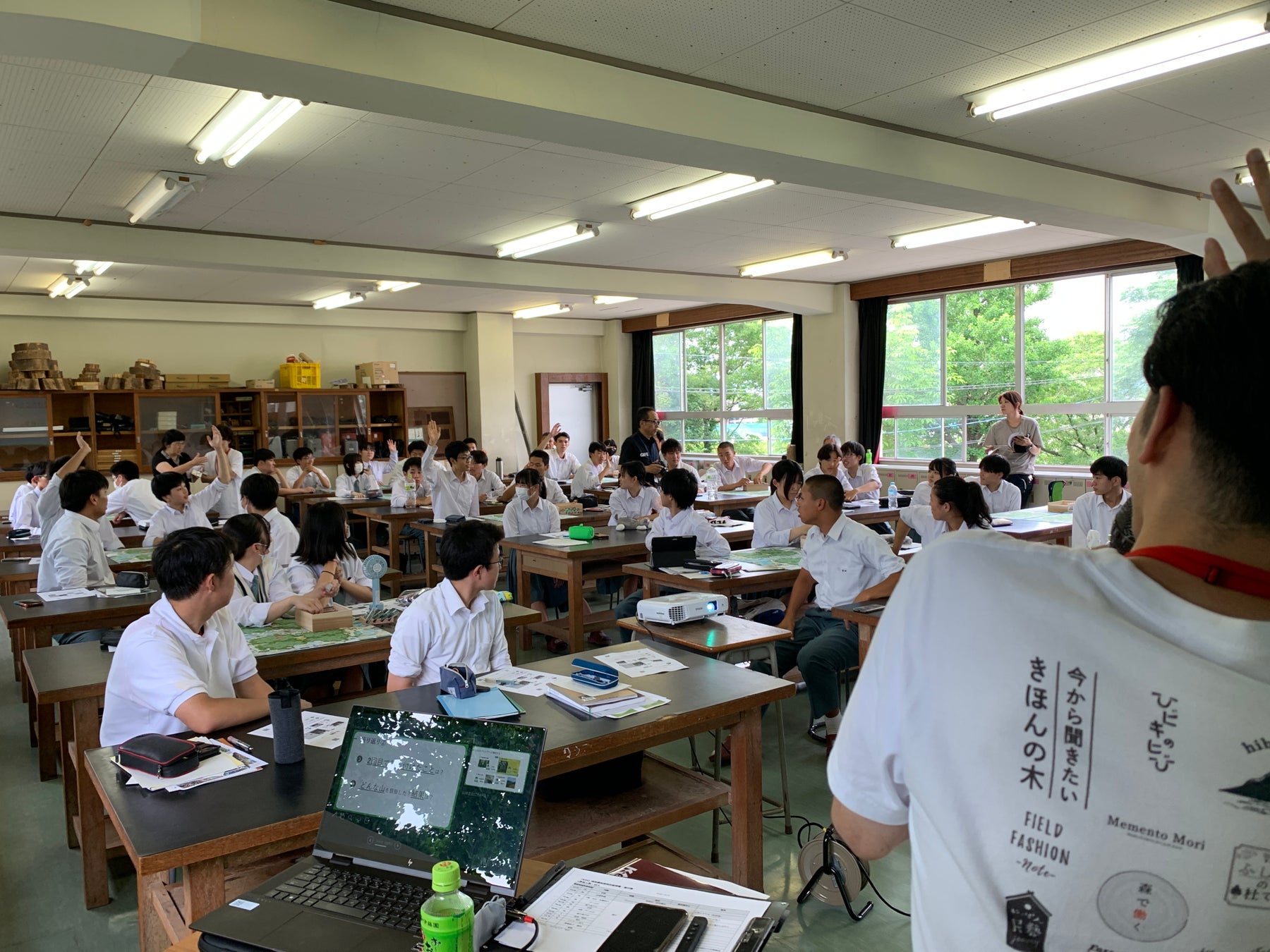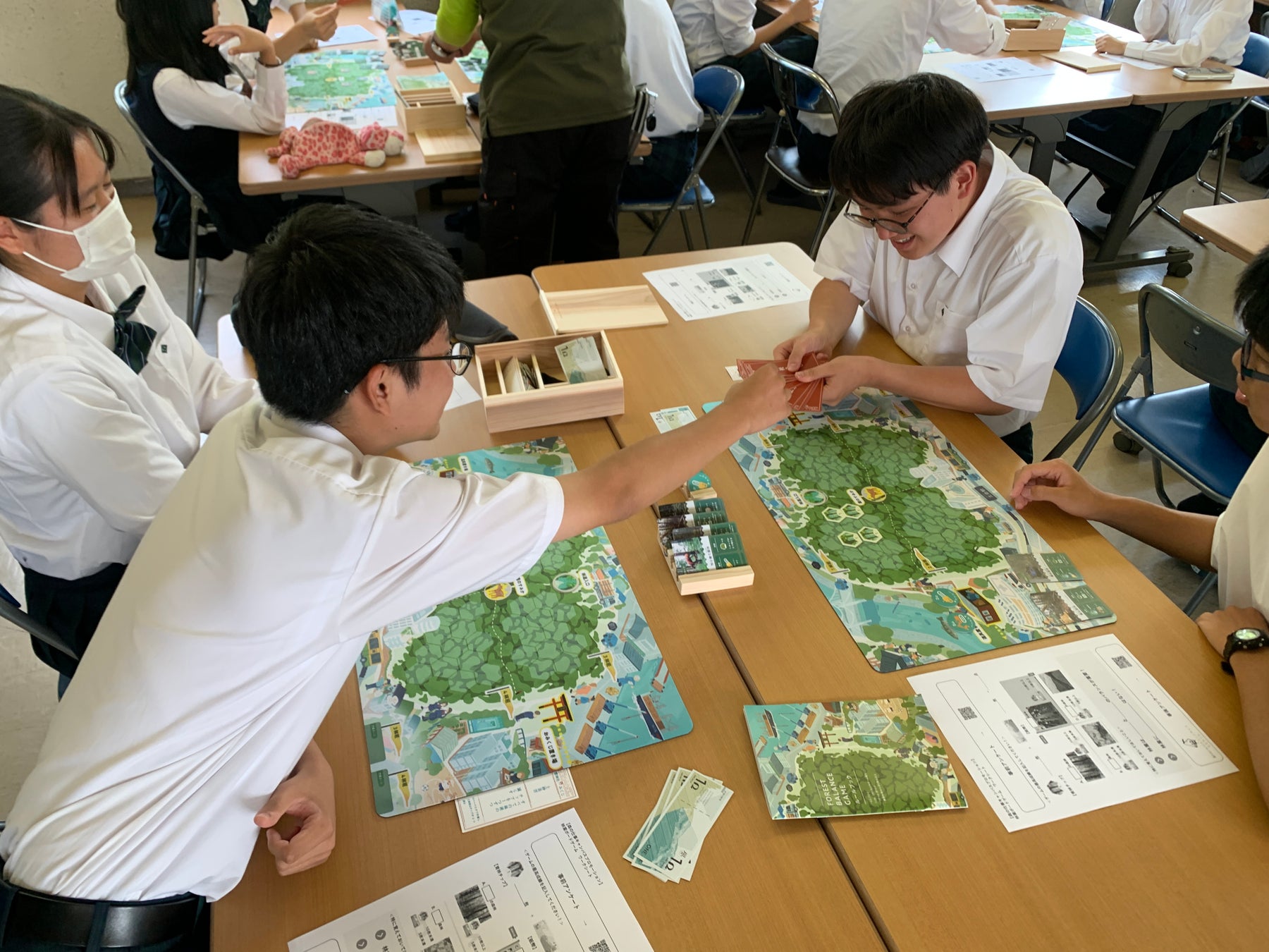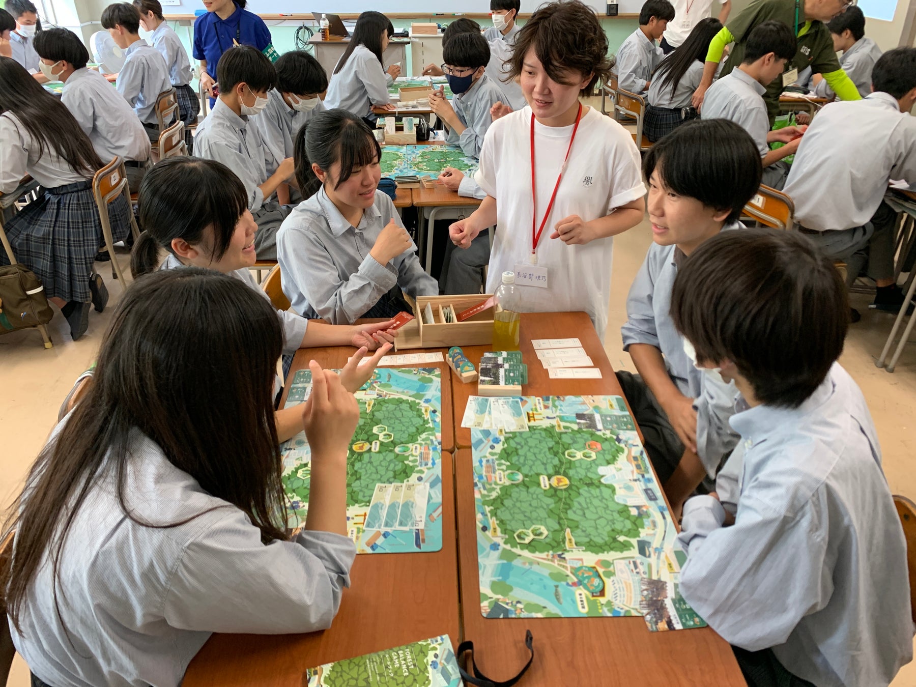 3年前からは岐阜県内の5つの農林高校でボードゲームを使った出張授業を行っています。岐阜県の林業労働力確保支援センターである森のジョブステーションぎふ(公益社団法人岐阜県森林公社)と連携し、今年も各校の森林関連学科2年生163名を対象にした出張授業を実施しました。