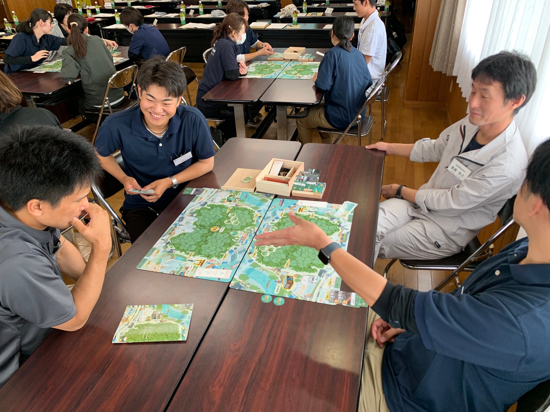 事業体の職員研修のアイスブレイクとしてボードゲームを導入、体験会の講師をご依頼していただく機会も広がりつつあります。実際に林業や木材に関わる事業体では、ボードゲームの体験を経て「現実だと新品の機械はなかなか買えないよね」といった会話で盛り上がり、機械や道具の中古品を売り買いするオリジナルルールを自ずと編み出すといった事例もありました。