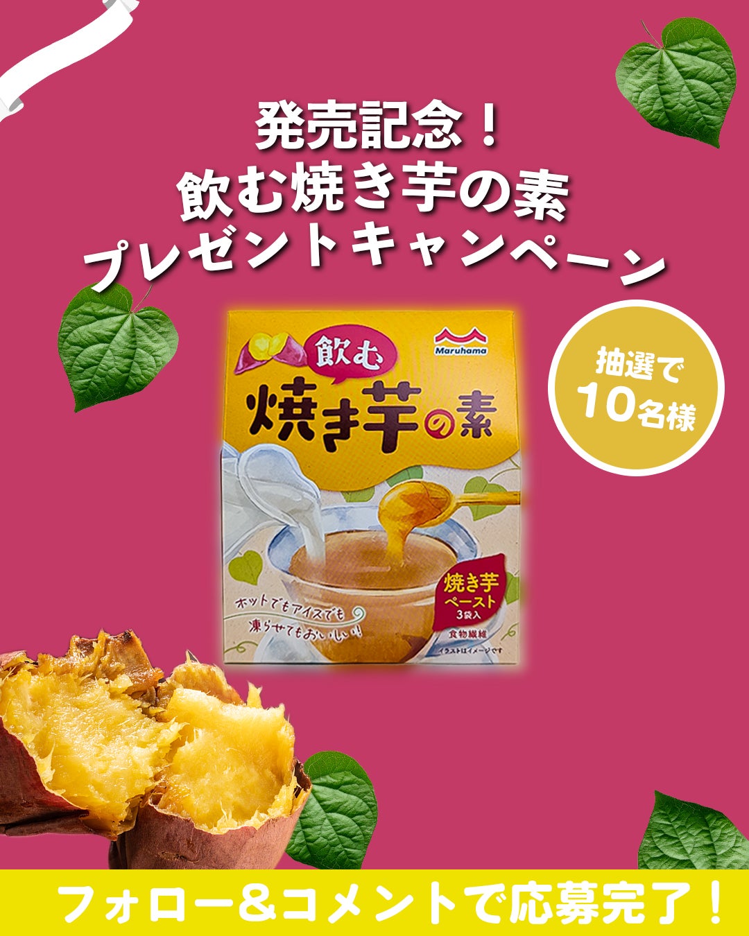 コメントをご投稿いただいた方から抽選で10名様に、「飲む焼き芋の素」をプレゼントいたします。