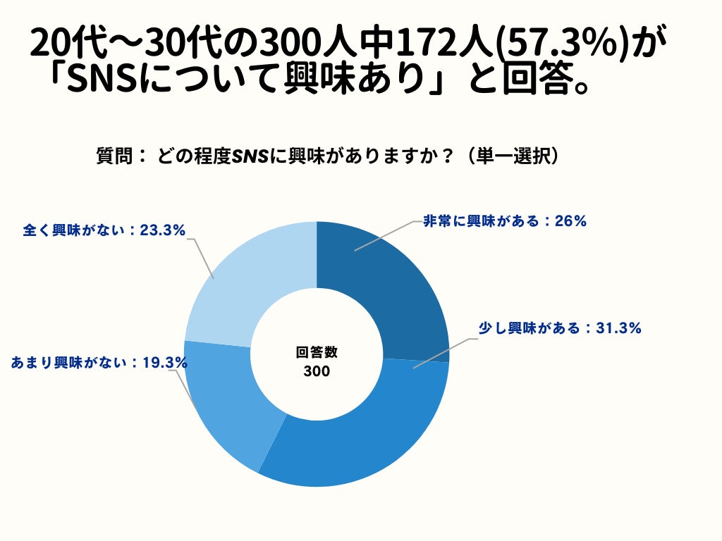 20代~30代の300人中172人(57.3%)が「SNSについて興味あり」と回答【SNS活用に関するアンケート】