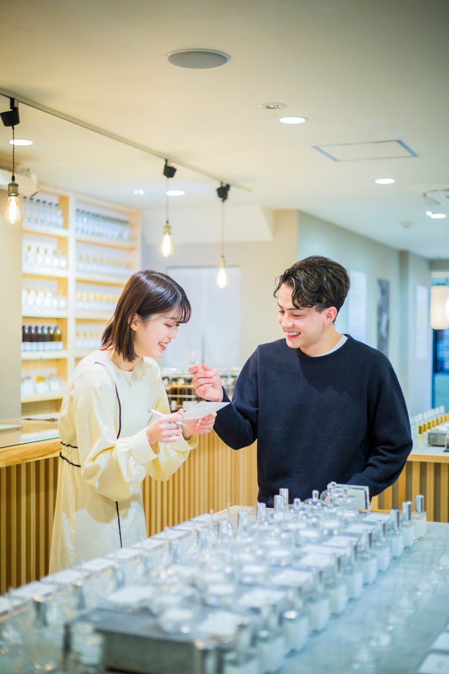 STEP.01 店内に並ぶ数十のフレグランスから、お好きな香りを、複数選びます。