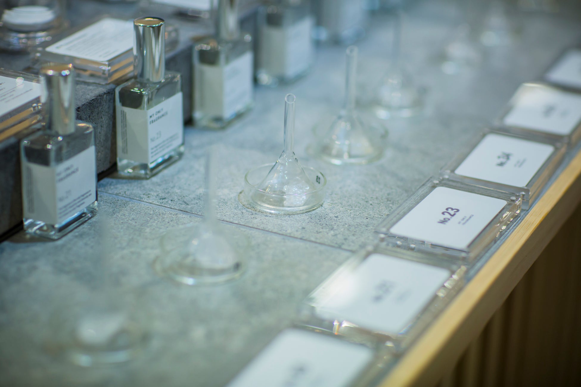 並ぶ香りは、アロマオイルのような単体の香りではなく一つ一つ考えられた香水。