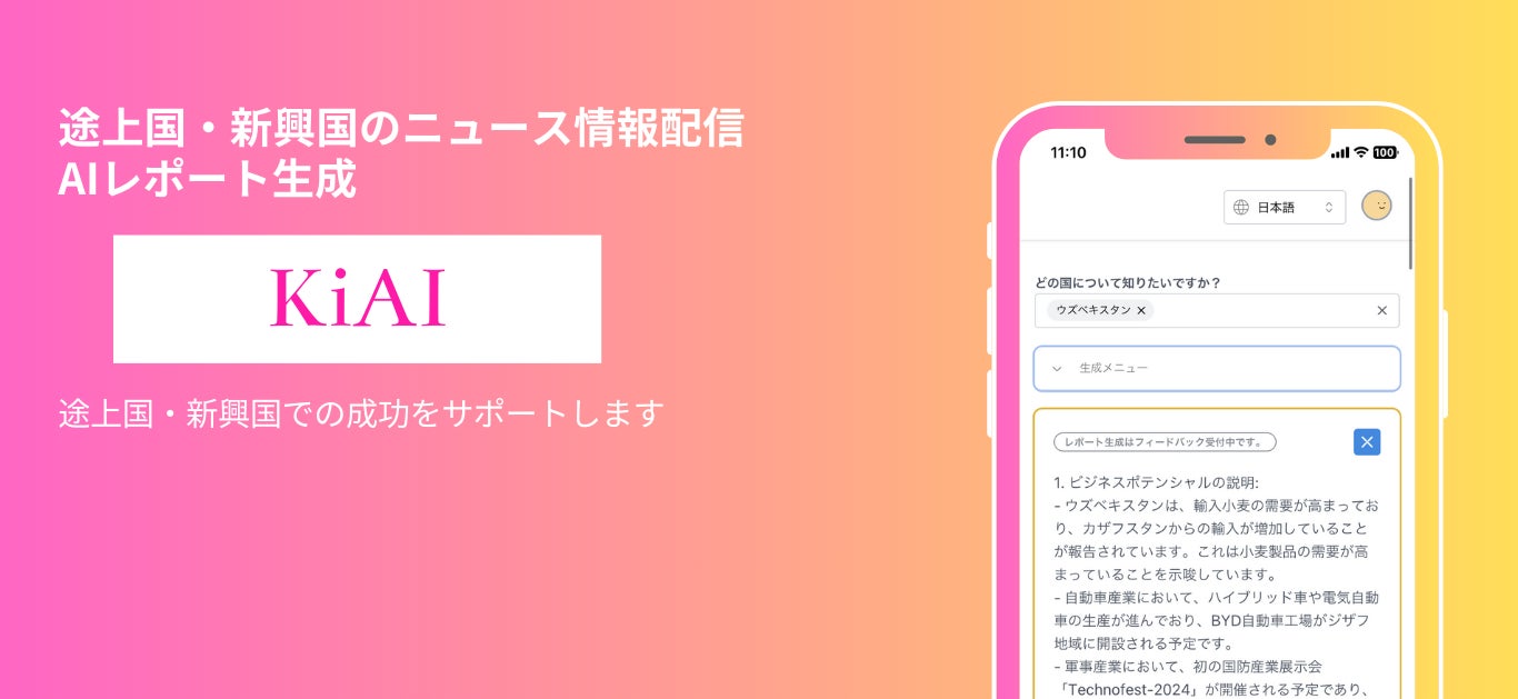生成AIによる途上国・新興国のニュースヘッドライン配信、AIレポート生成サービス「KiAI」の開発に注力。茨城大学と共同研究も実施