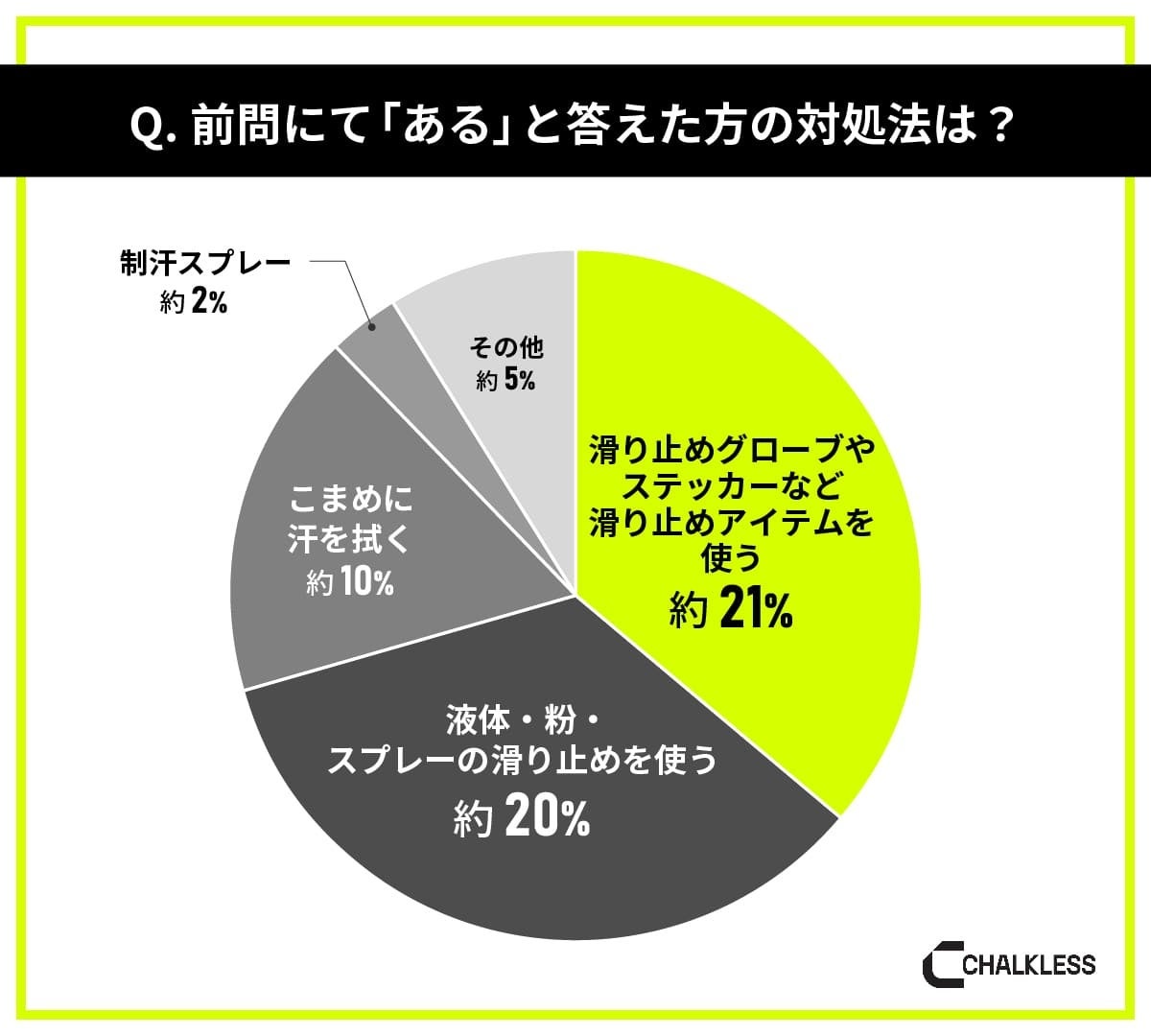 滑り止めグローブやステッカーなど滑り止めアイテムを使う:約21%