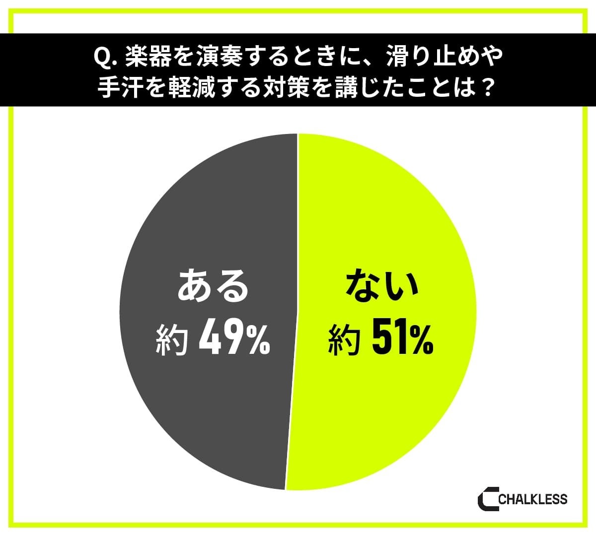 「楽器を演奏するときに、滑り止め、もしくは手汗を軽減する対策を講じたことはありますか?」