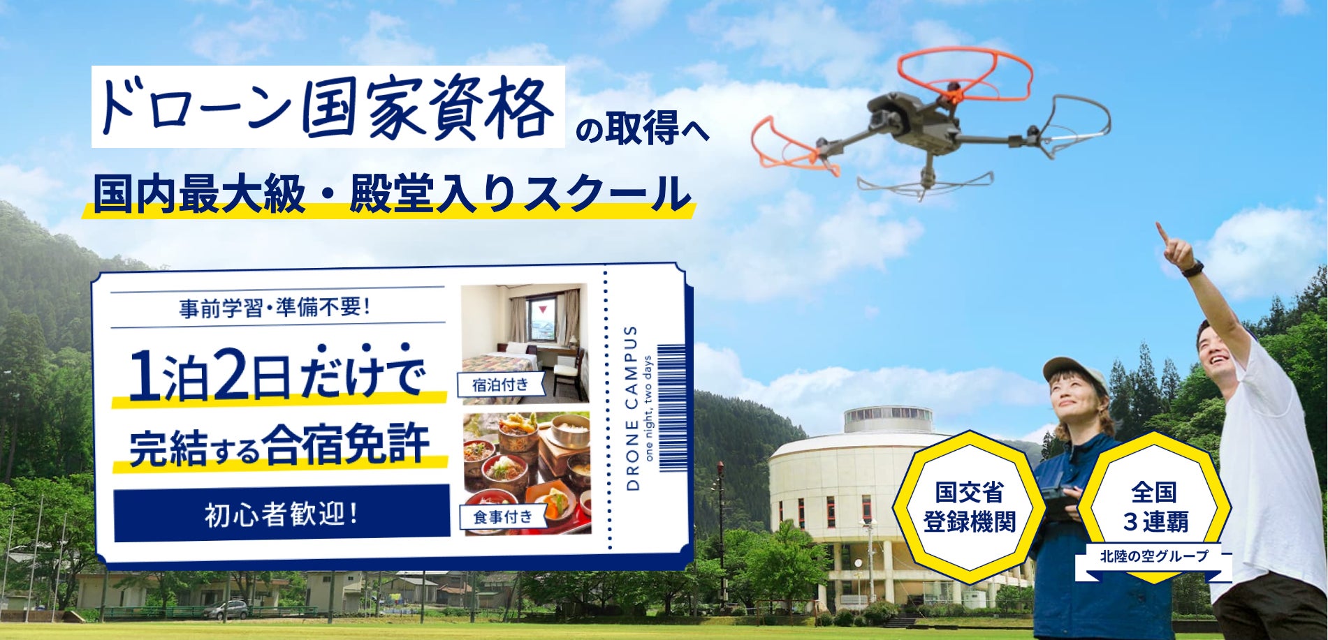 北陸の空株式会社(所在地:福井県鯖江市、代表取締役:久森章裕)は、2025年現在、ドローンキャンパス 福井の空(福井県)、ドローンキャンパス 福岡の空(福岡県)、ドローンキャンパス 伊豆の空(静岡県)、ドローンキャンパス 兵庫の空(兵庫県)、ドローンキャンパス 広島の空(広島県)、ドローンキャンパス 熊本の空(熊本県)の6拠点を運営しています。国土交通省が定めた基準を満たし、「登録講習機関」として認定されており、現在までに1,800名の受講生がいる国内最大級の歴史あるドローンスクールです。