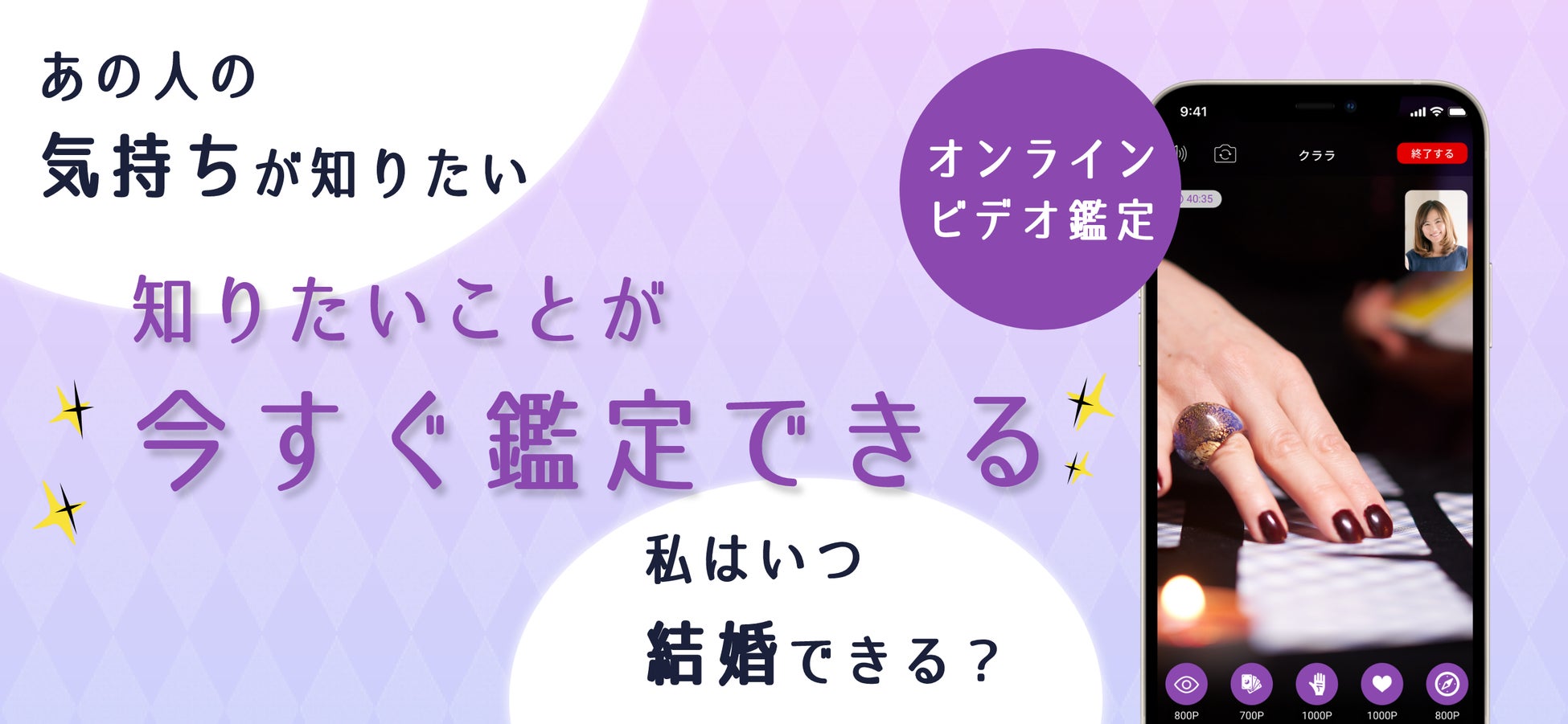「占いルーム」では、タロット、四柱推命、手相など、さまざまな占術を駆使した鑑定が可能で、ビデオ通話を通じてユーザーはリアルタイムでの鑑定を受けることができます。アプリ内の通話機能を使用するため、通話料もかかりません。
