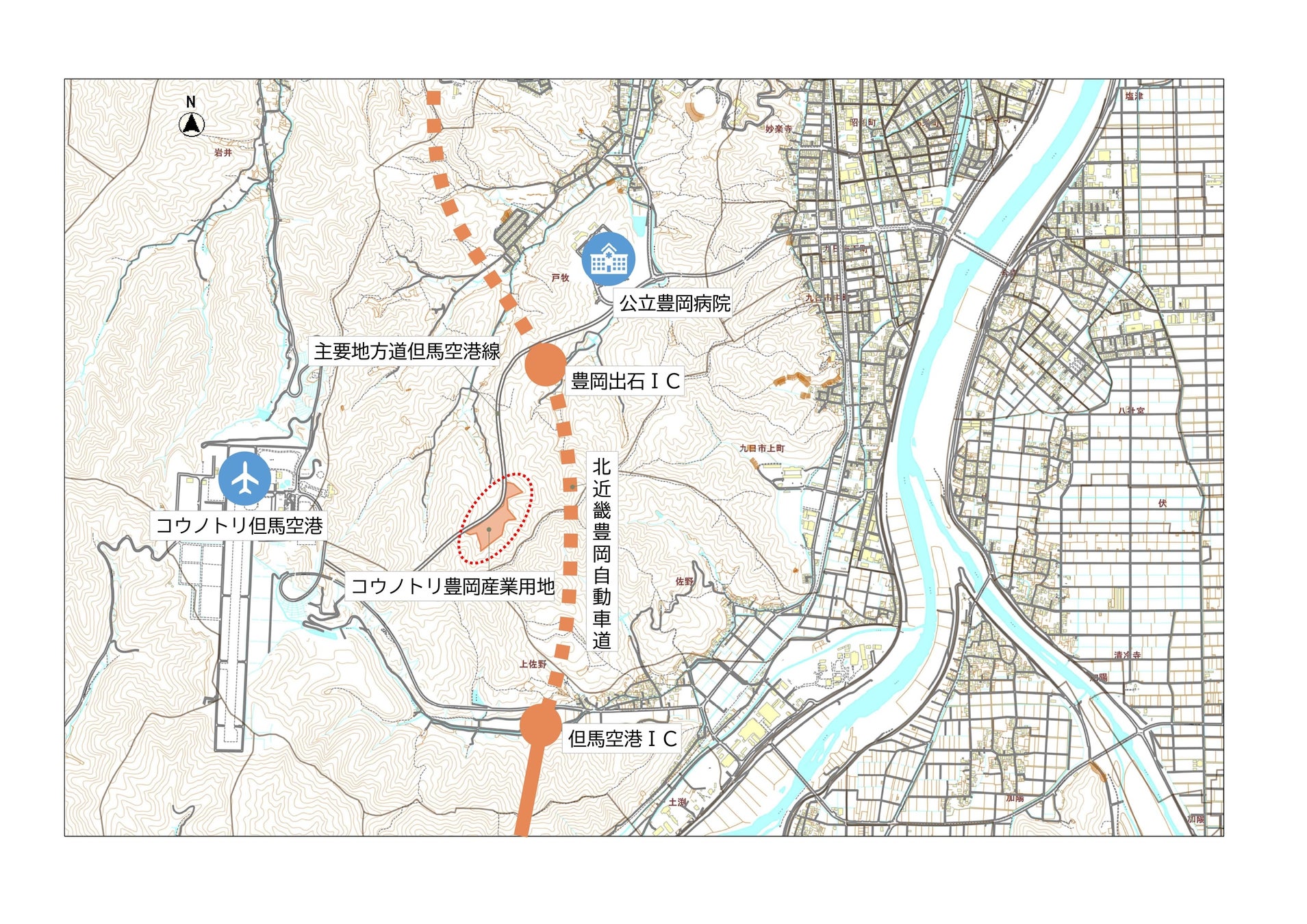 交通アクセスは、北近畿豊岡自動車道豊岡出石ICからは約2分、但馬空港ICからは約5分の至近距離にあり、交通利便性に大変優れた立地環境となっています。