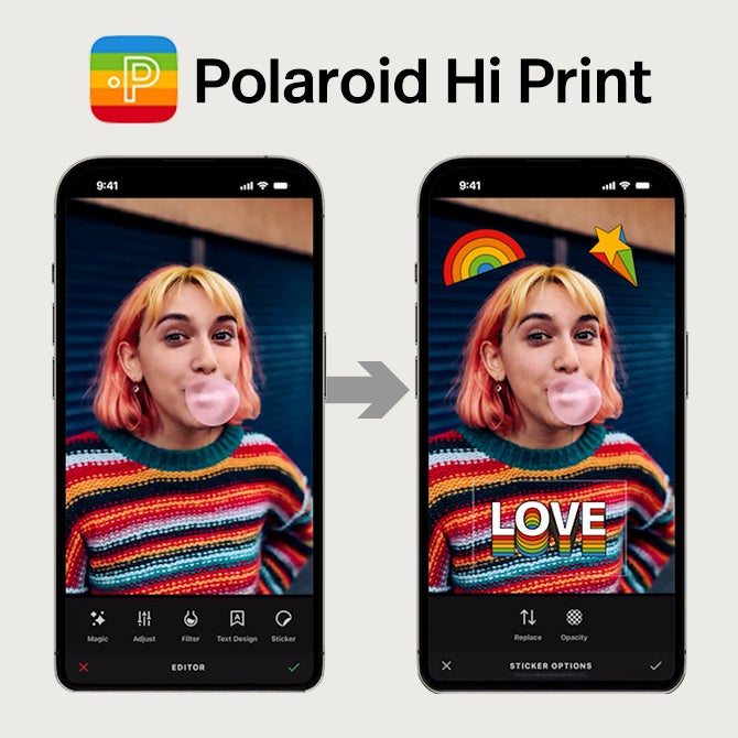無料のPolaroid Hi·Printアプリで、画像をカスタマイズできます。