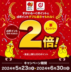 株式会社NTTドコモ(以下、ドコモ)は、すかいらーくグループにおいて、「すかいらーくポイント」が2024年5月16日(木)より開始したことに伴い、「すかいらーくポイント&共通ポイントのダブル提示でポイント2倍キャンペーン」を2024年5月23日(木)から2024年6月30日(日)までの期間で開催いたします。