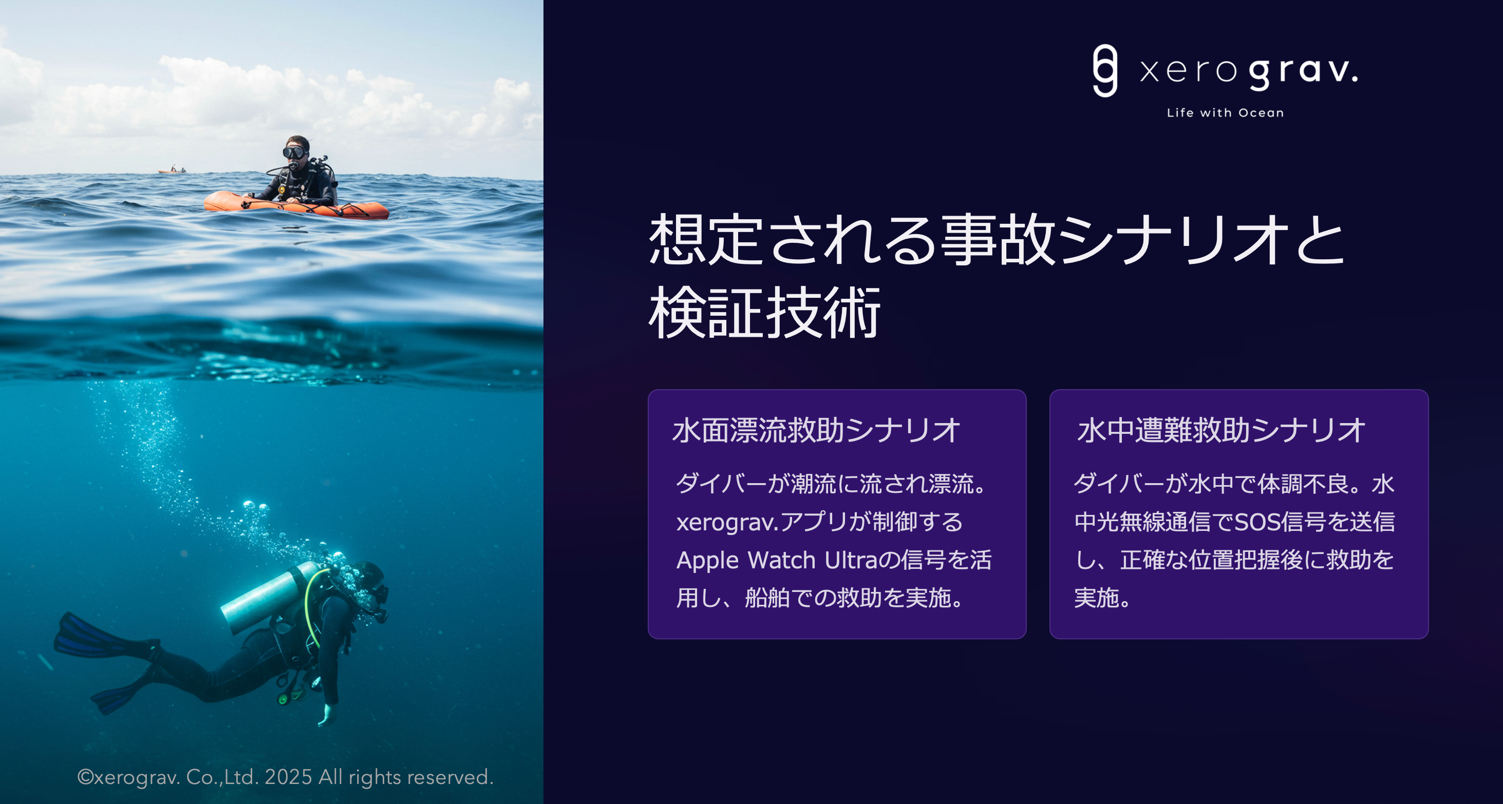 xerograv.(ゼログラヴ)は、海を愛する人の命を守るテクノロジーを開発する海洋テック企業です。