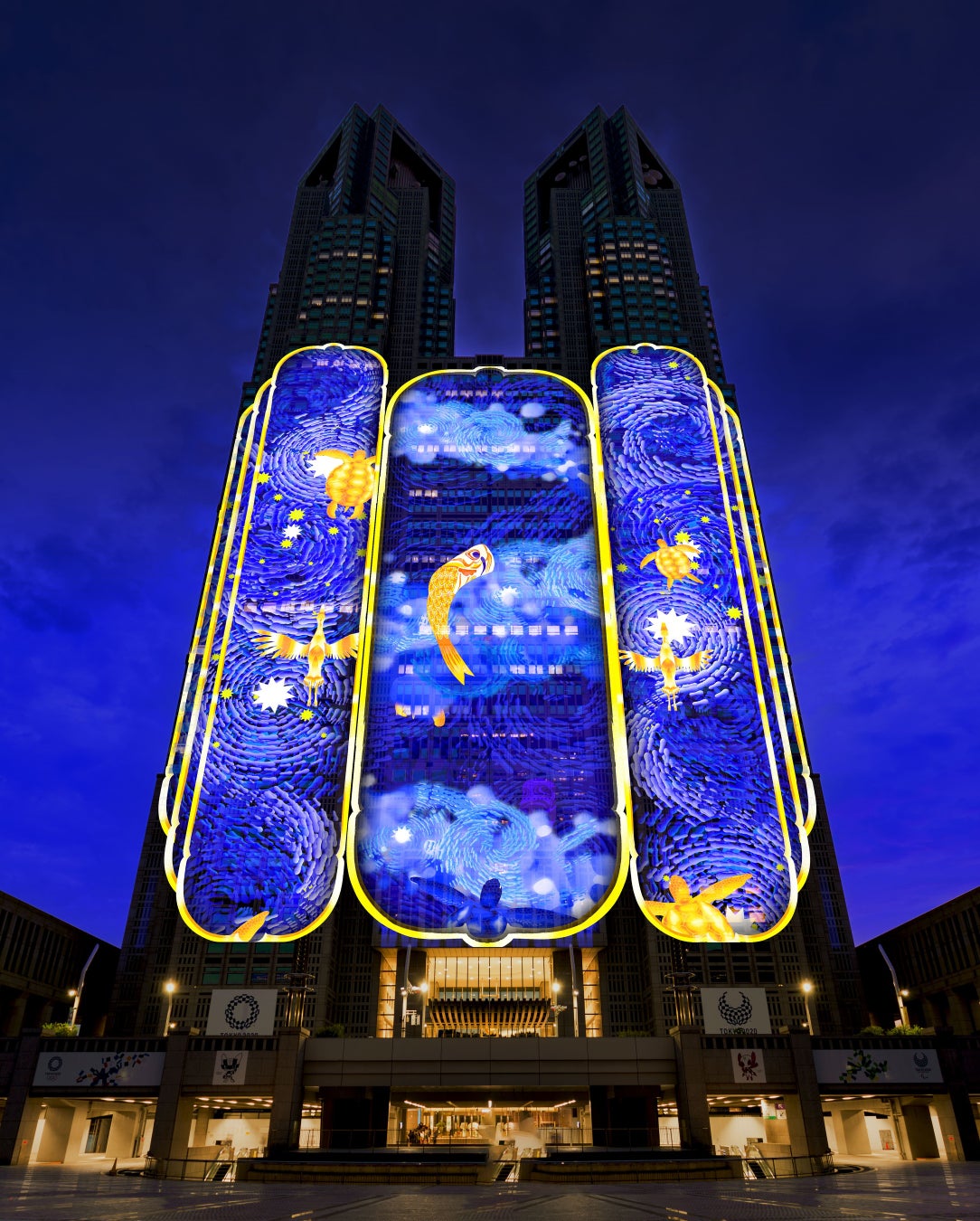 東京都では、夜間の観光振興の活性化に向けて、東京の夜を彩る新たな観光資源を作るため、代表的なランドマークである都庁第一本庁舎をキャンバスに光と音で多彩なアートを表現するプロジェクションマッピングを通年で上映しています。