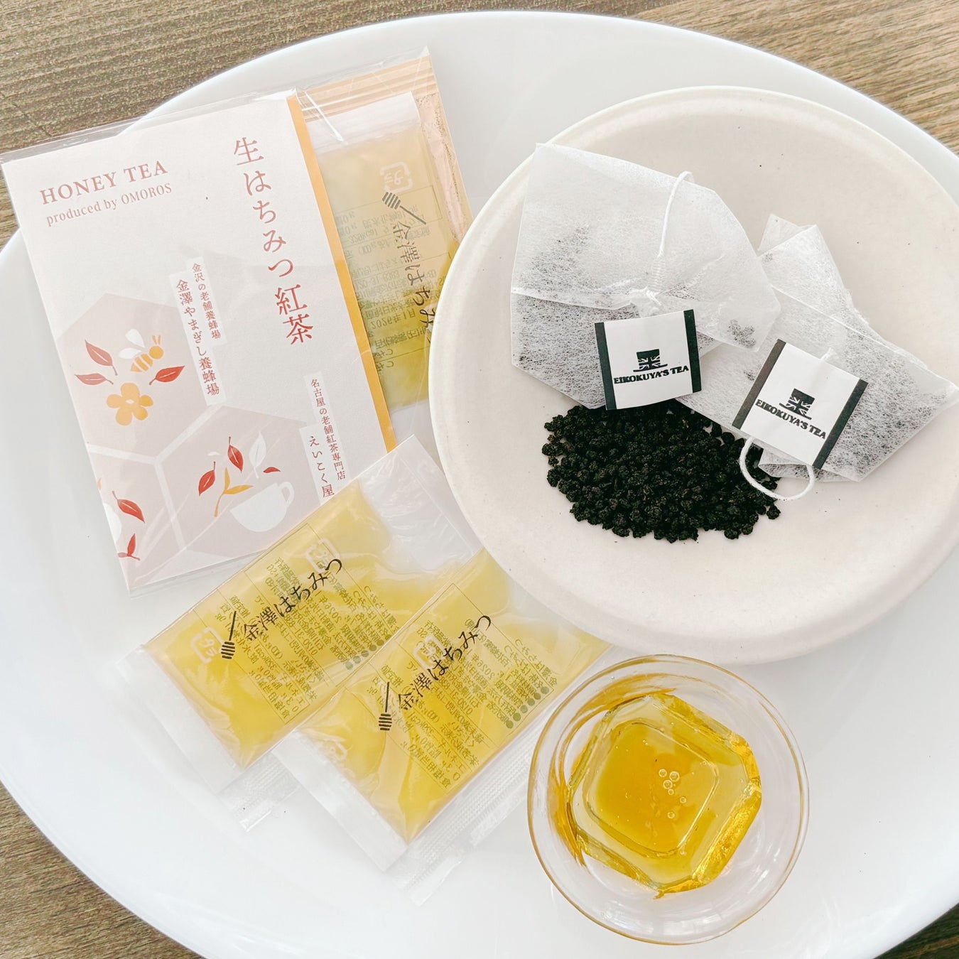 本製品は、「えいこく屋」の紅茶のティーバッグと「金澤やまぎし養蜂場」の生はちみつのセット商品です。