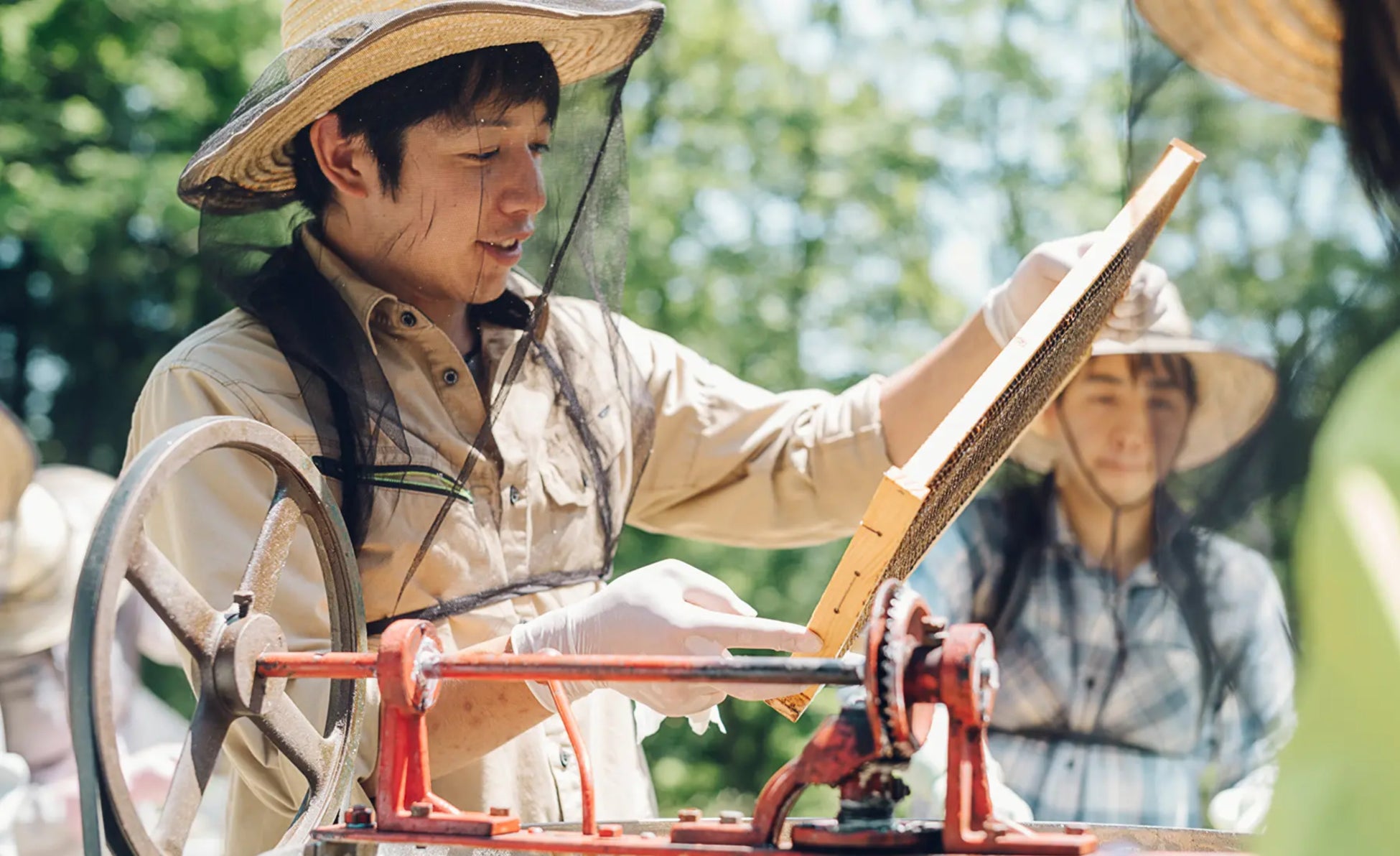 みつばちが巣箱の中でじっくり熟成させるまで待って「完熟生はちみつ」だけを採取し、加熱や糖分等の添加を一切行わず、自然のままの高い栄養価と風味を持つ「完熟・生はちみつ」を使用しています。