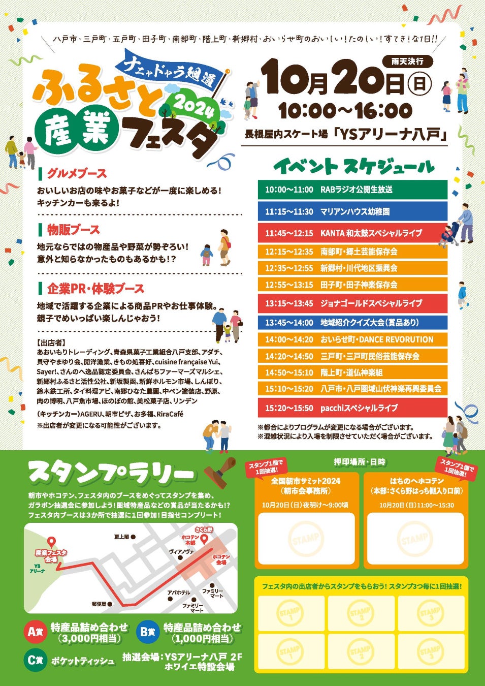 八戸圏域8市町村の料理や物産品の販売、地域企業の体験ブース、ステージイベントが行われるなど、南部 地方の魅力が盛りだくさんです。