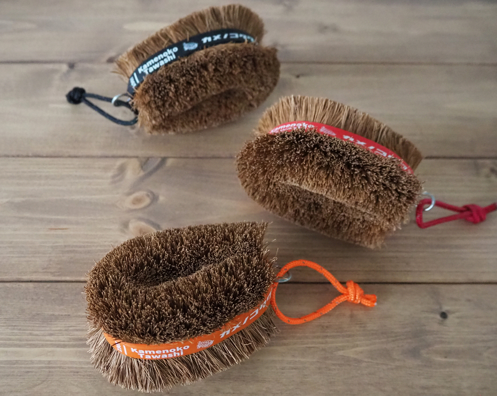 たわしをキッチンでもアウトドアでも使い易い仕様にしました。