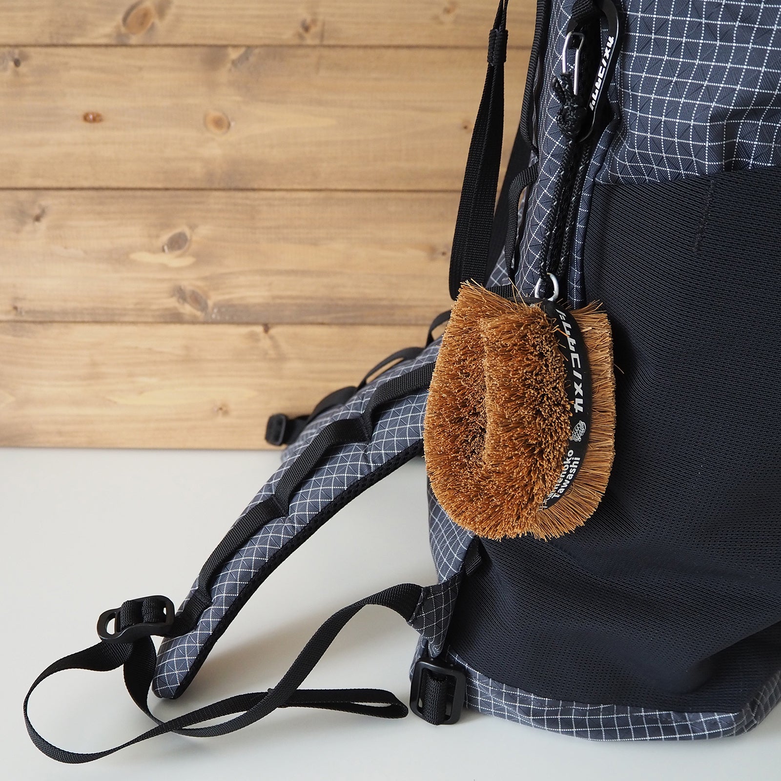 たわしに巻いている帯の上にシリコンバンドを装着する事で、握った時に手が滑りづらくなります。繊維が洗浄面に密集するため、鉄板の焦げや靴底の泥落としなどに向いています。リフレクター付きのパラコードが付いているのでバック等にも装着でき持ち運びにも便利です。