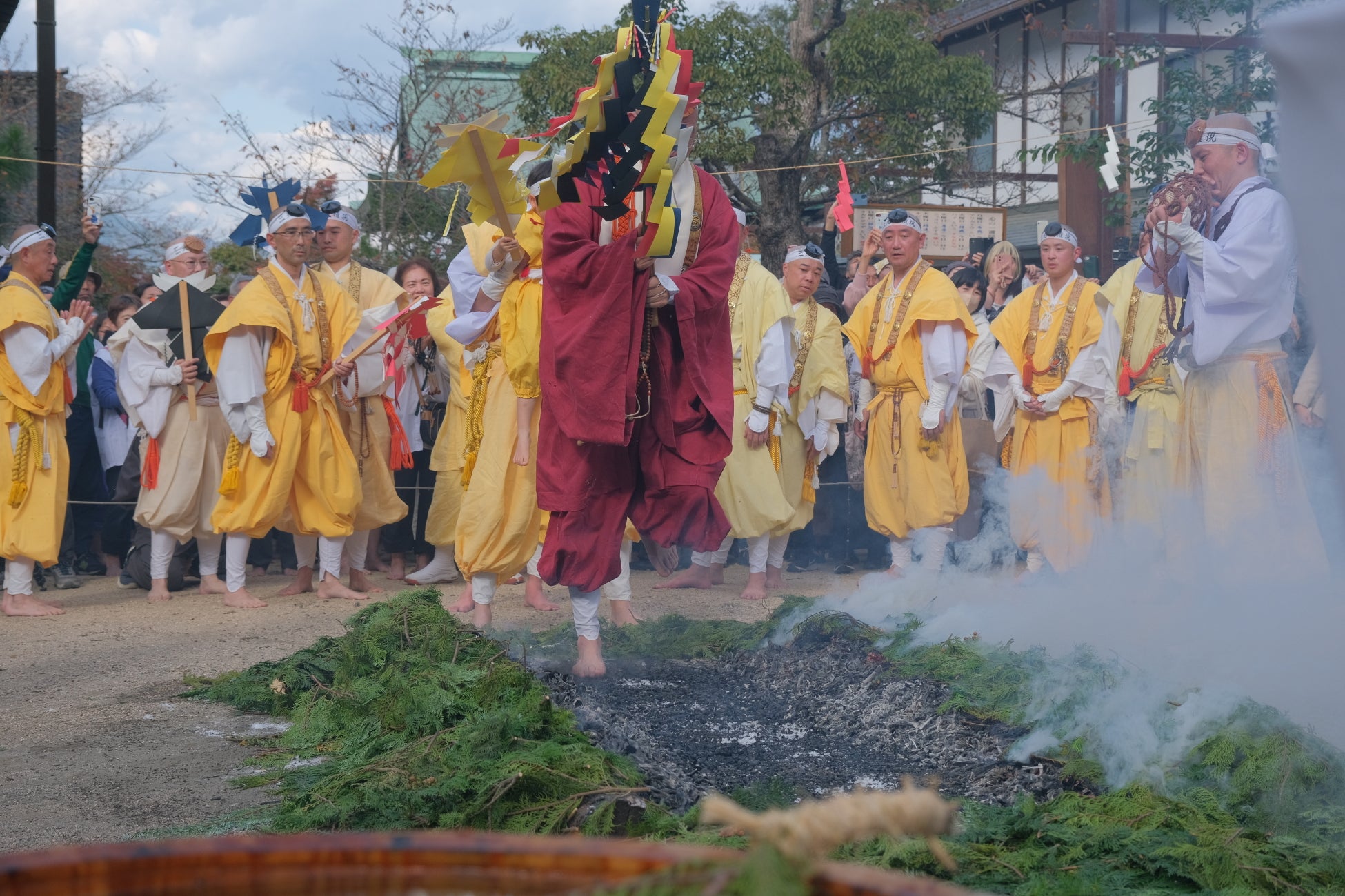 そして、火の残る檜の青葉の上を、大導師・僧侶・山伏・信者・参拝者の順で、それぞれの願望成就を唱えながら素足で渡ります。