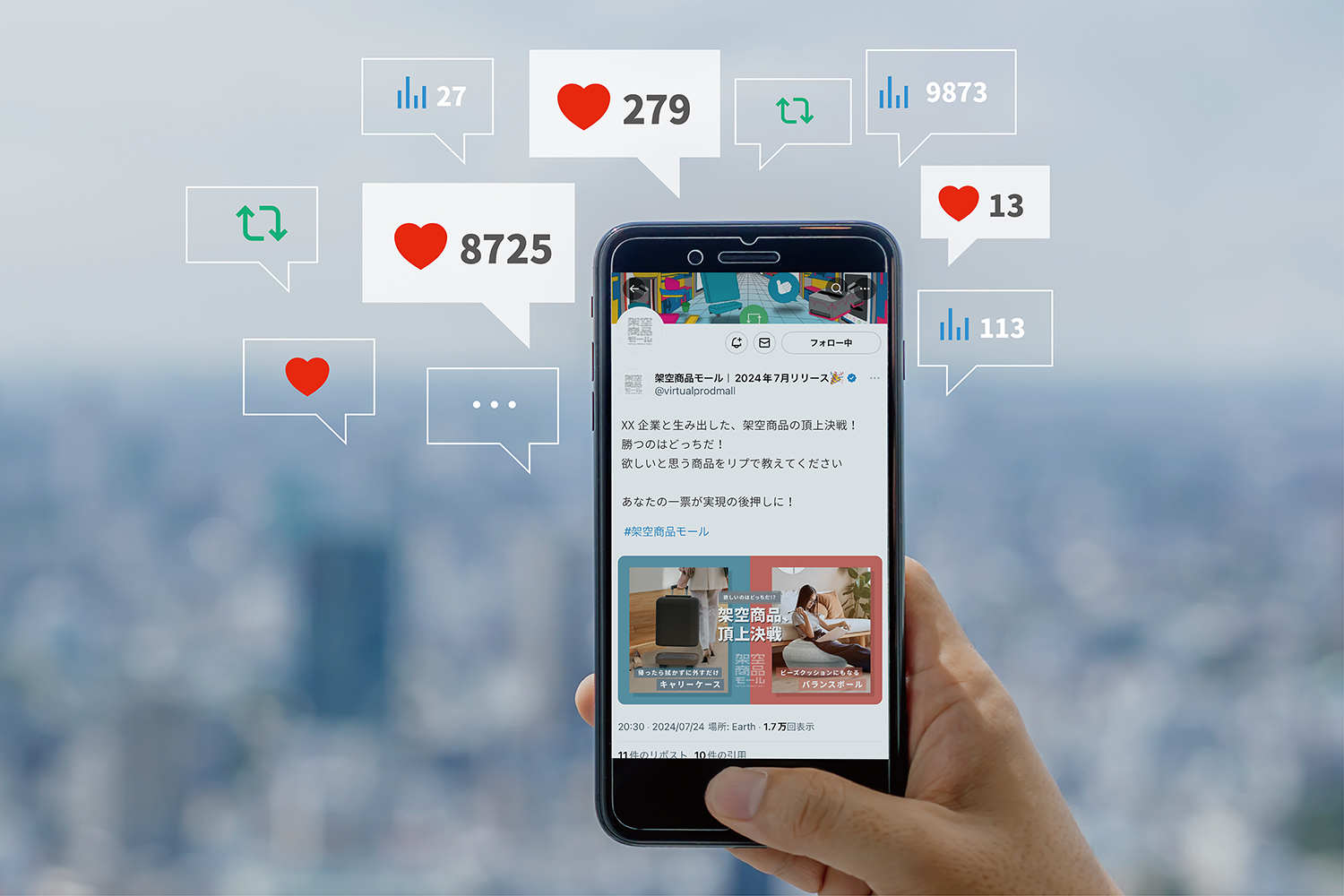 Xでのツイートやキャンペーン施策などによる需要の検証を実施し、どこまで多くの”欲しい”が集まるのかを可視化。そのデータを元に、ワークショップ開催メーカーは架空商品を採用するかを決定することができます。
