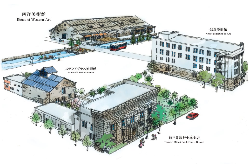 小樽芸術村は、大正から昭和にかけて建設された5棟の歴史的建造物を活用した4つのミュージアムで構成されています。北海道に生まれ育てられた株式会社ニトリが、社会貢献活動の一環として2016年に開設しました。2020年からは、似鳥文化財団が運営を担っています。