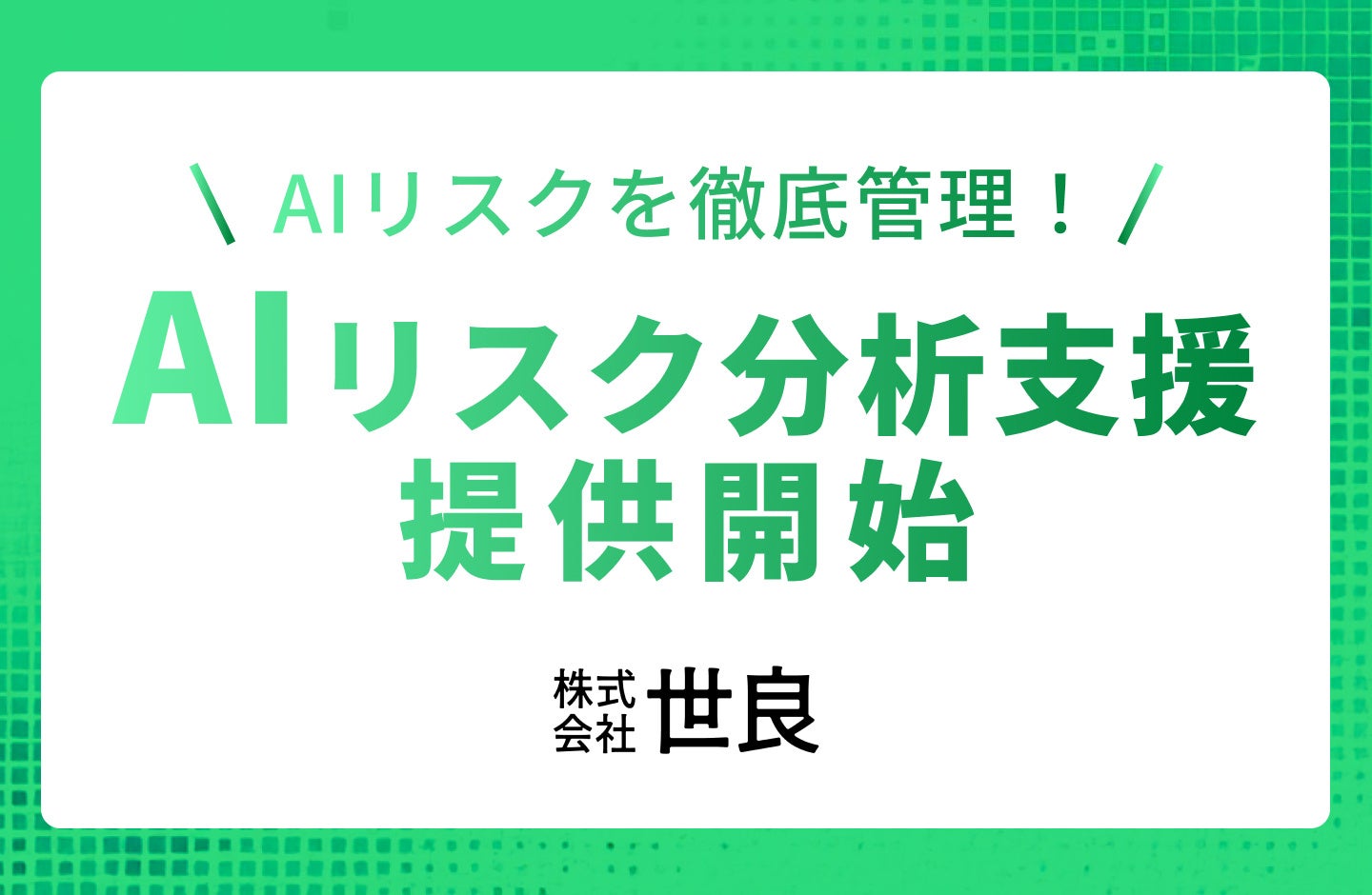 株式会社世良(本社所在地:東京都目黒区、代表取締役社長:遠藤 嵩良)は、生成AIを活用する企業が直面し得るリスクを早期発見し、具体的な対応策を提示する『AIリスク分析支援サービス』を提供開始いたしました。