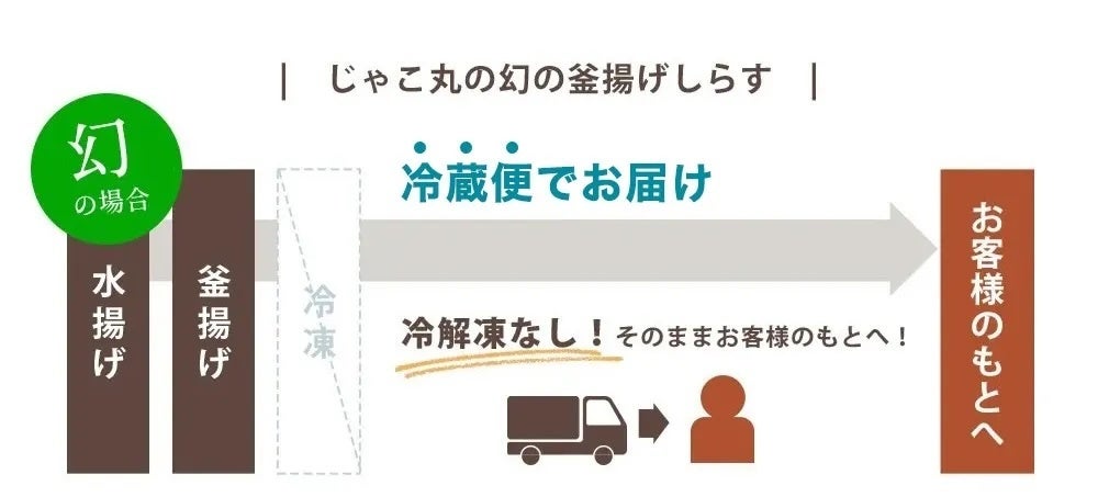一度も冷凍しない「じゃこ丸の釜揚げしらす」の配送へのこだわり