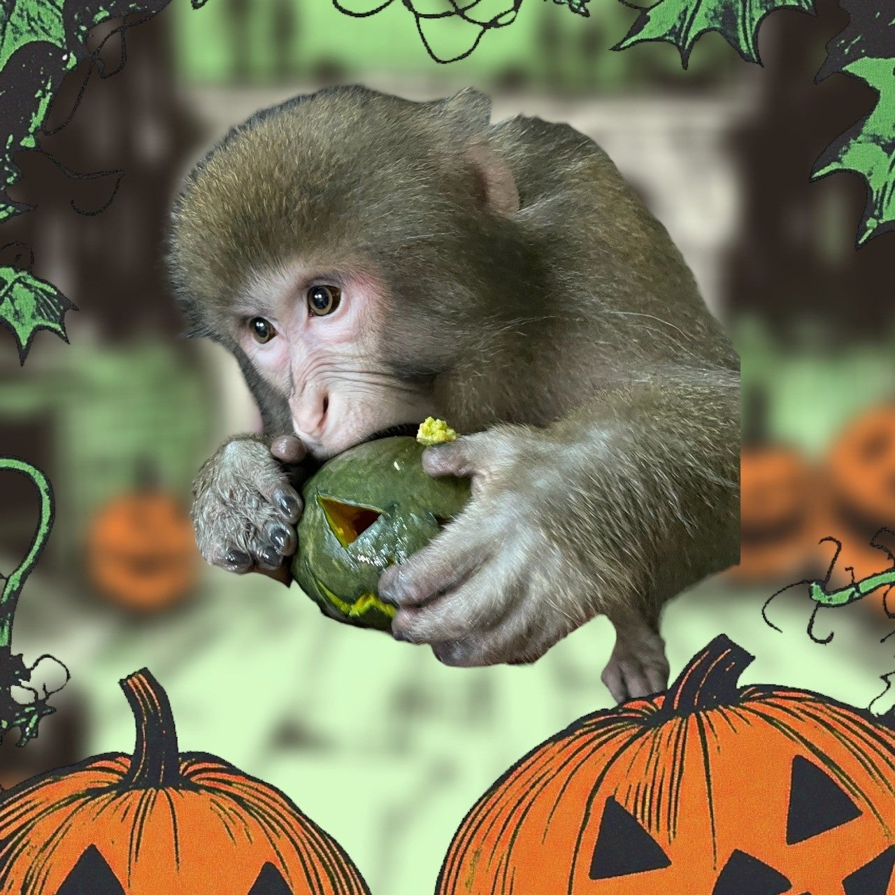 ハロウィンイベントでは14時より猿たちへ大きなカボチャのエサやりを行います。ハロウィンならではのカボチャを食べるサルたちの様子をご覧いただけます。