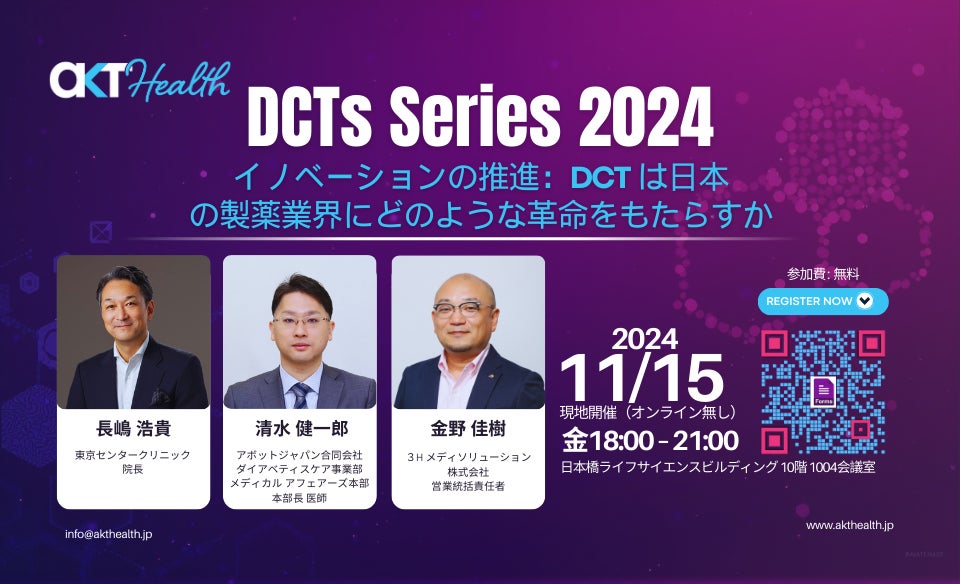 株式会社AKT Health(本社:東京都渋谷区、代表取締役:タラプラガダ・アディティア・クマール)は、国内の「分散型臨床試験(DCT)※1」ネットワーク構築に向けて『DCTs Series』イベントを始動いたします。