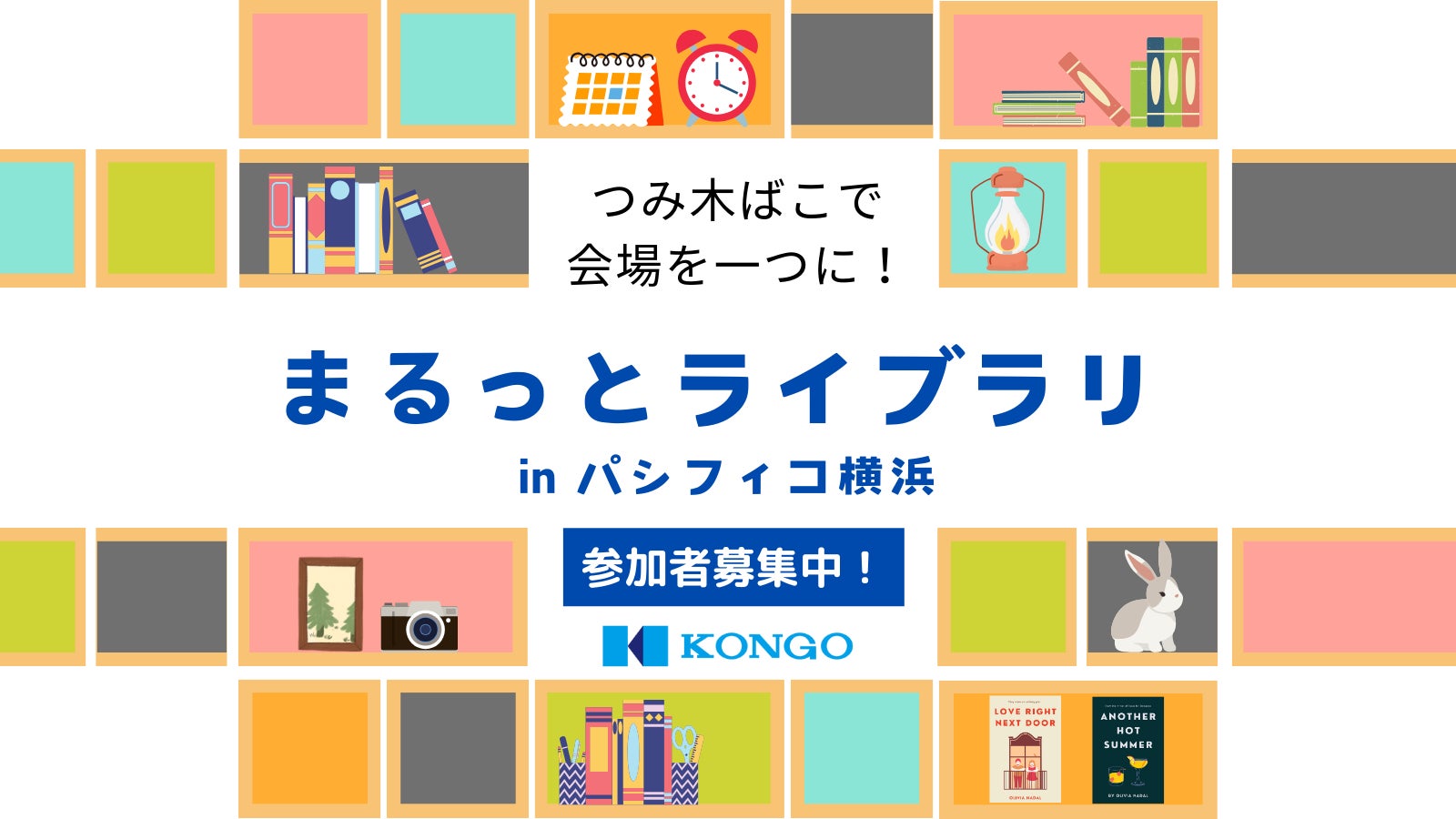 図書館総合展出展者様の各ブース内で「つみ木ばこ」を展示にご活用いただき、図書館総合展の会場であるパシフィコ横浜全体をひとつの図書館のように展開するプロジェクトです。