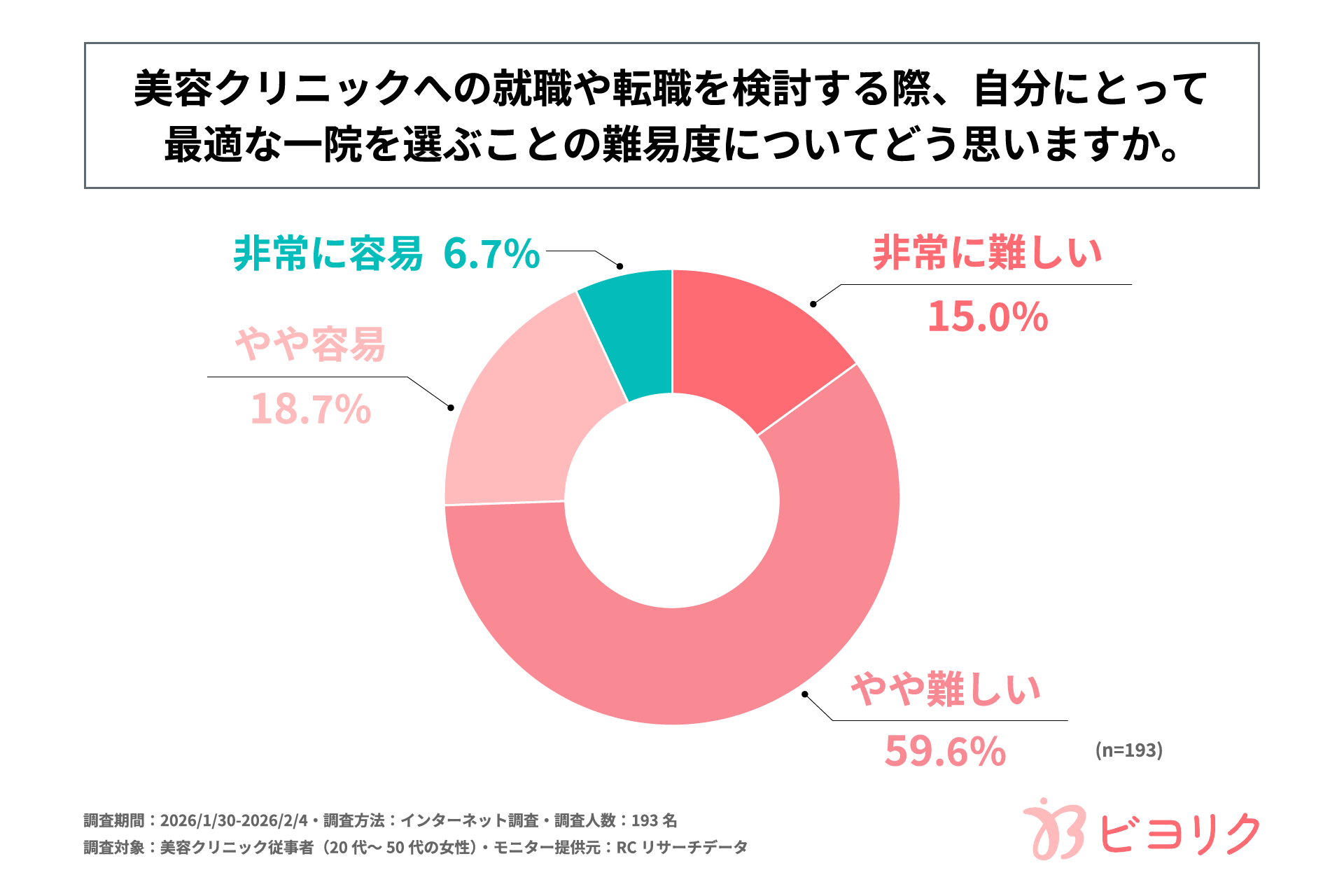 美容クリニック従事者の7割以上が、美容クリニックへの就職や転職を検討する際、自分にとって最適な一院を選ぶことを難しいと感じている