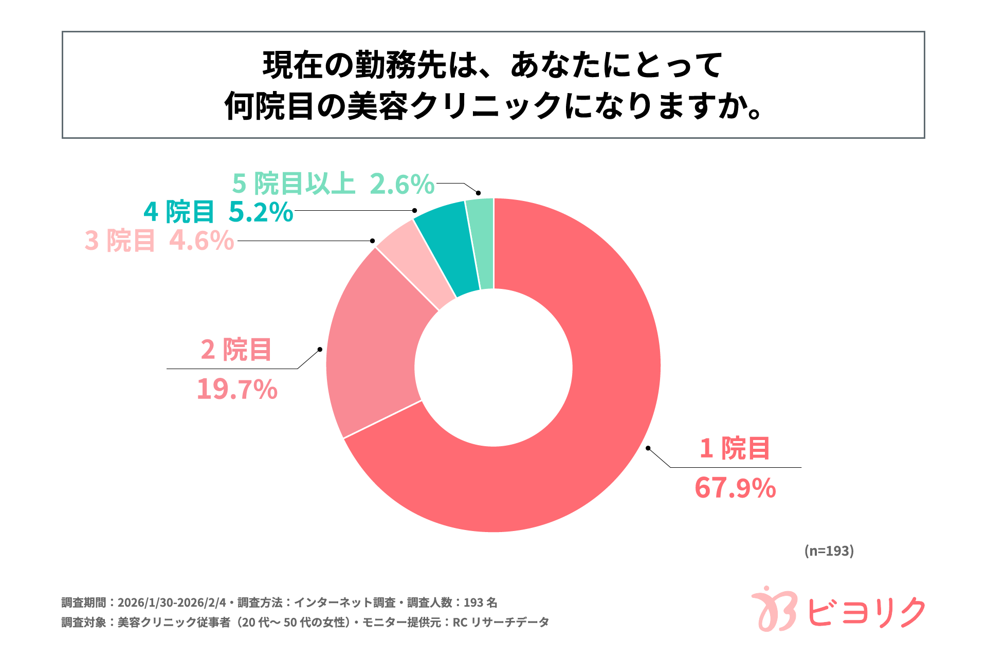 美容クリニック従事者の約3人に1人が、2院以上の美容クリニックで勤務経験がある