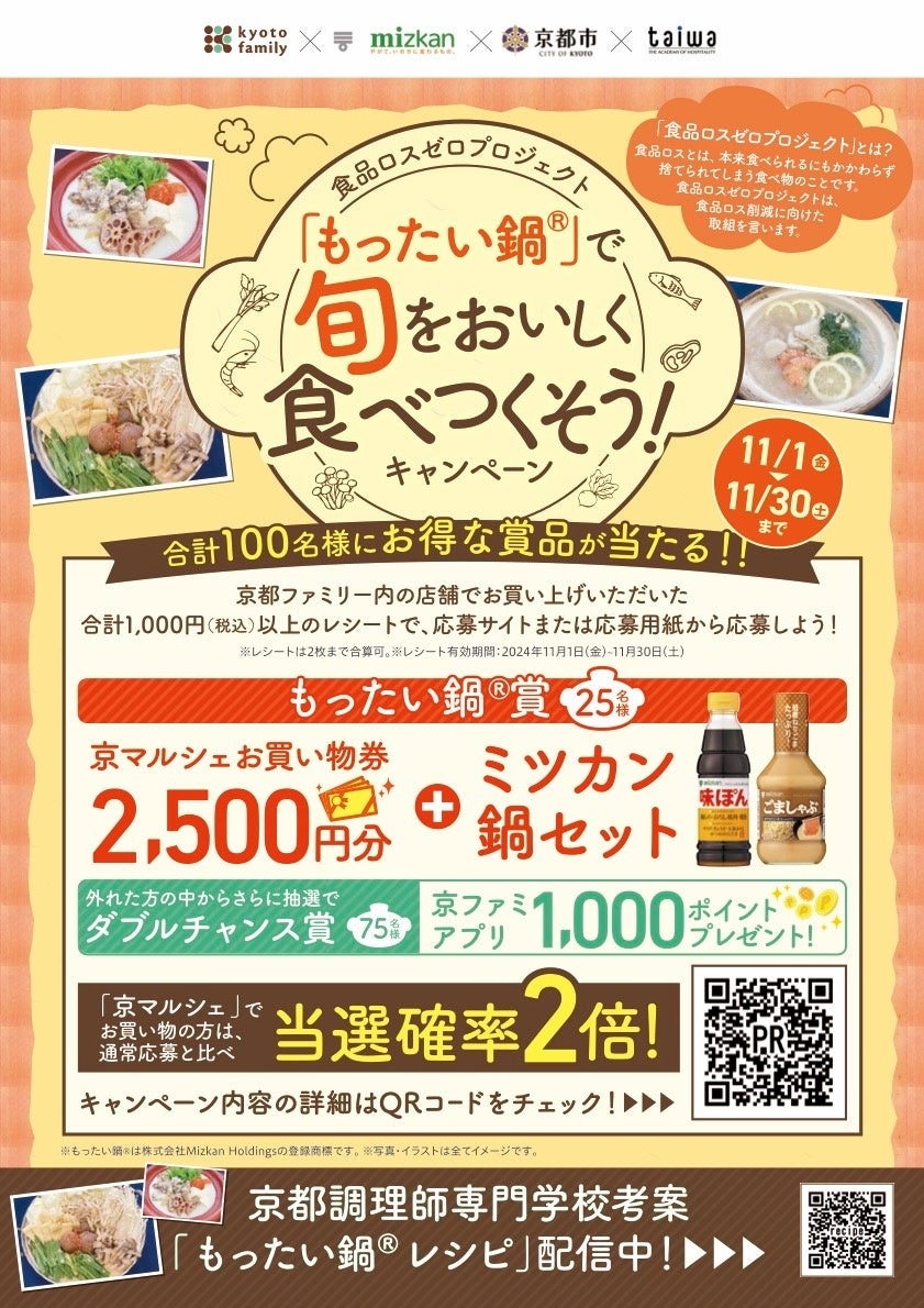 〜食品ロス削減をテーマに、旬の食材を鍋にして簡単においしく食べつくそう!京都ファミリーで使えるお買い物券とミツカン商品が当たる環境配慮型キャンペーン〜