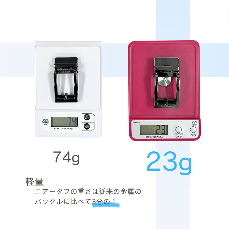 特徴②エアータフの重さは従来の金属のバックルに比べて3分の1