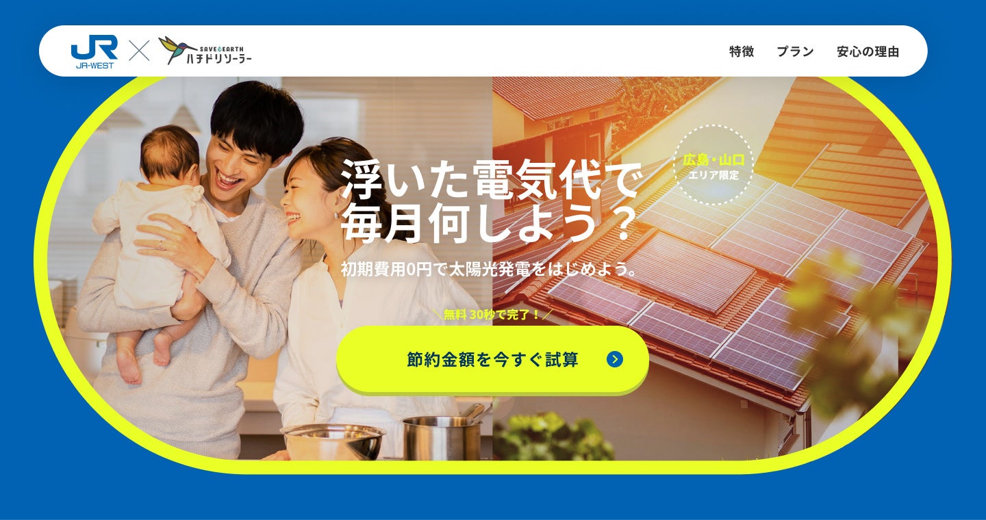 「自然エネルギーが主電源の未来を創る」をミッションに掲げるハチドリソーラー株式会社(本社:東京都新宿区、代表取締役社長:池田将太、以下:ハチドリソーラー)は、株式会社JR西日本イノベーションズ(本社:大阪市北区、代表取締役社長:門間洋介、以下:JR西日本イノベーションズ)と共同で、西日本旅客鉄道株式会社(本社:大阪市北区、代表取締役社長:倉坂昇治、以下:JR西日本)のアセットを活用した住宅向け太陽光発電サービスの実証実験を開始することをお知らせいたします。