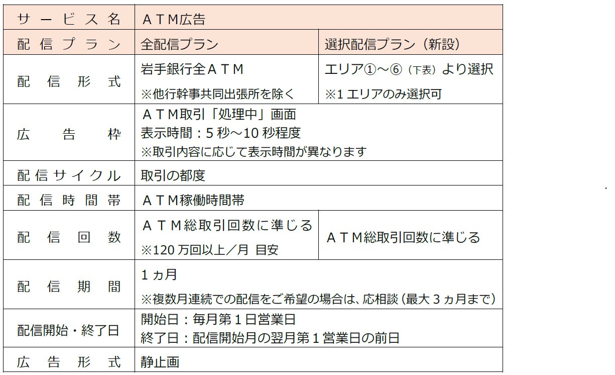 株式会社岩手銀行(頭取 岩山 徹)は、地域の事業者さまが抱えるマーケティング領域の課題解決を図ることを目的として「いわぎん広告・マーケティングサービス(※)」を展開しております。この度、当行店舗内外に設置しているATM画面上に事業者さまの広告を掲載いただける「ATM広告」について、リニューアルを実施いたしましたのでお知らせいたします。
