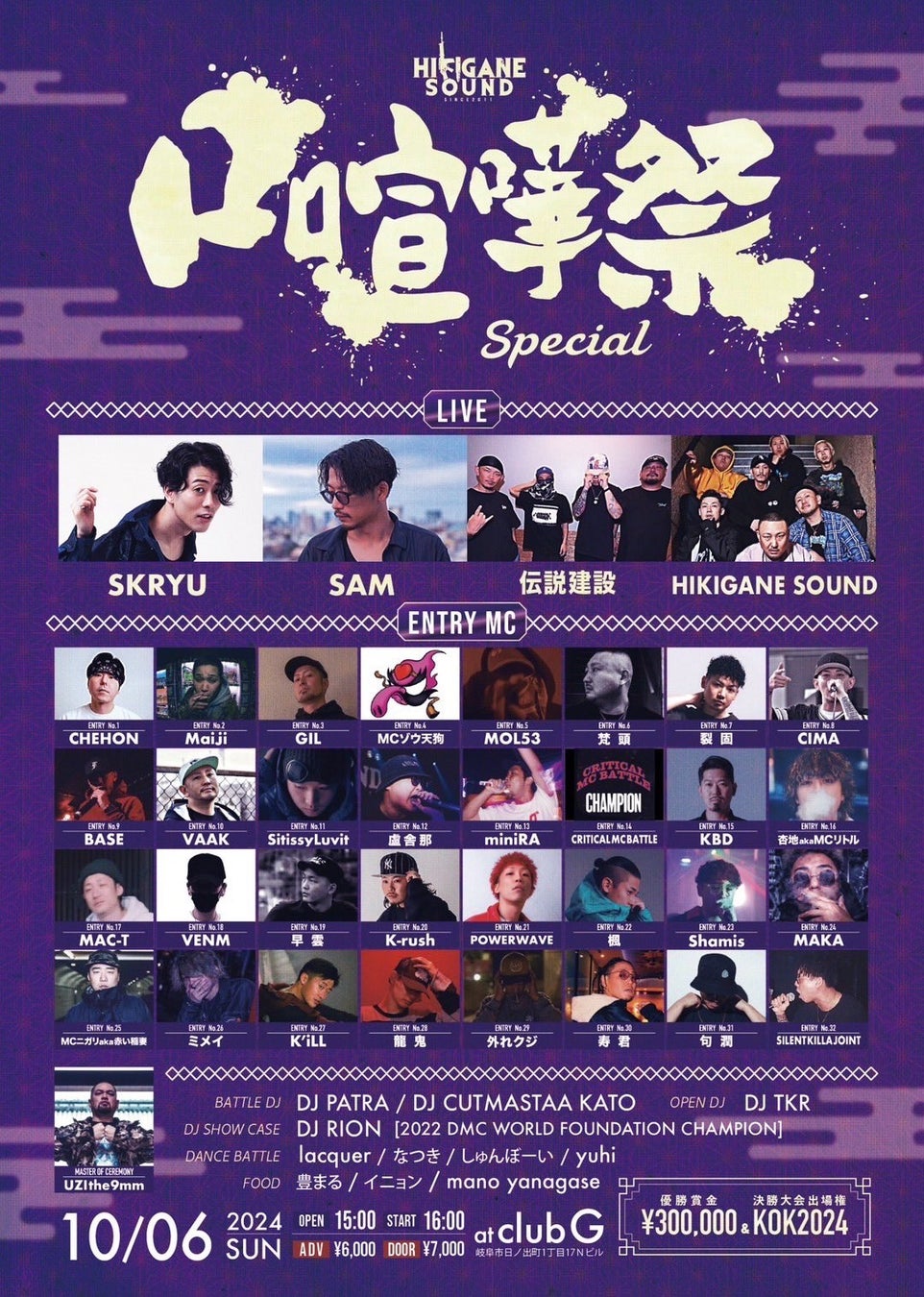 2024.10.6 (日) "HIKIGANE SOUND" 主催『口喧嘩祭 SPECIAL』が "club G" にて開催