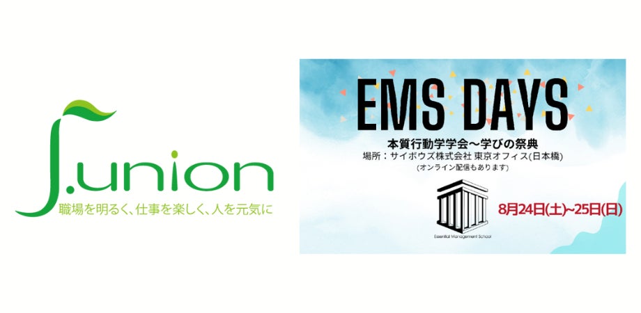 労働組合を専門に総合支援を行っているj.union株式会社は、8月24日(土)・25日(日)にサイボウズ株式会社 東京オフィスで行われる「EMS DAYS 本質行動学学会〜学びの祭典〜」に協賛します。
