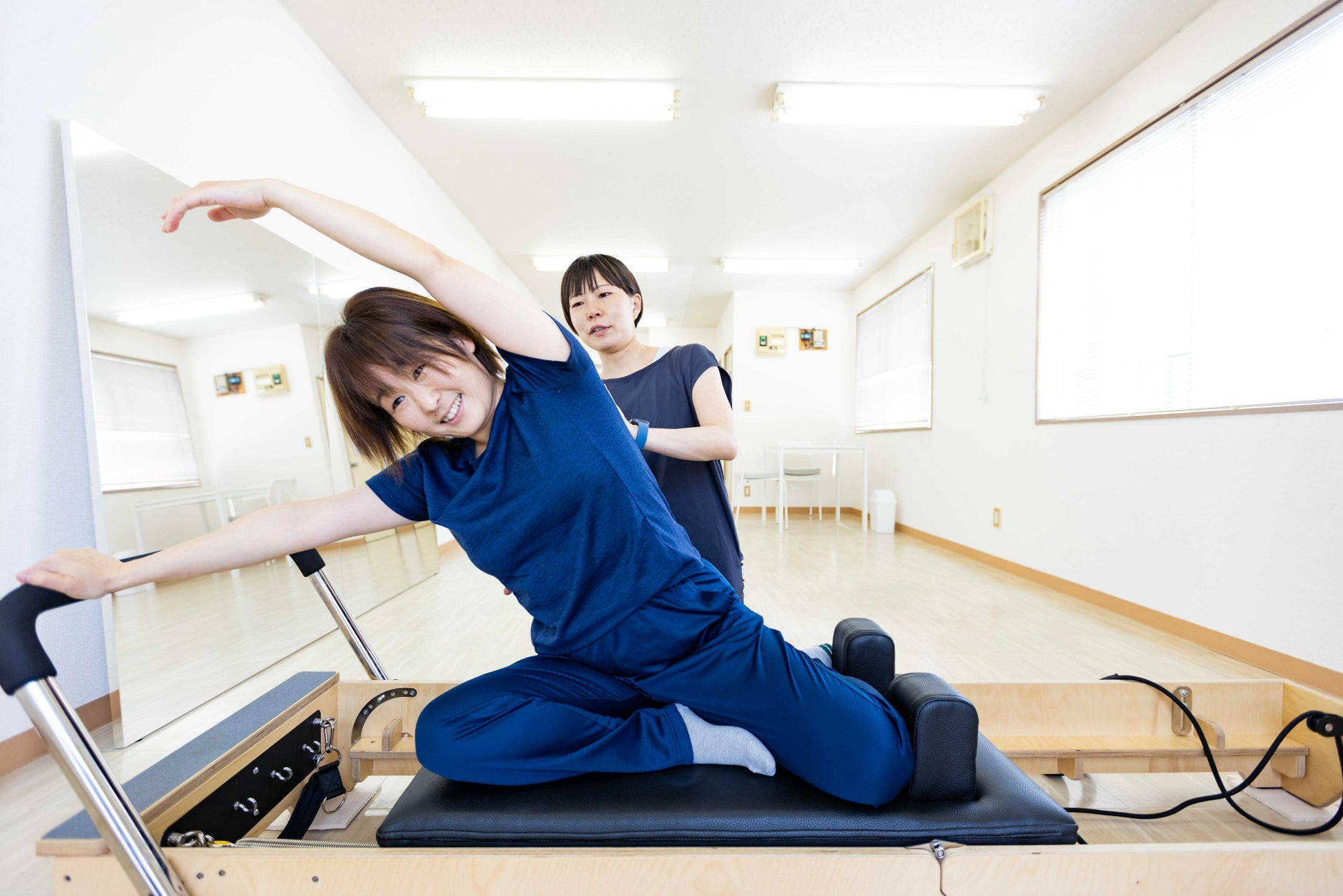 マットピラティス、マシンピラティス、ヨガに初めて挑戦する方や運動が苦手な方でも安心して通えるようインストラクターが一人ひとりのペースに合わせたレッスンを実施します。