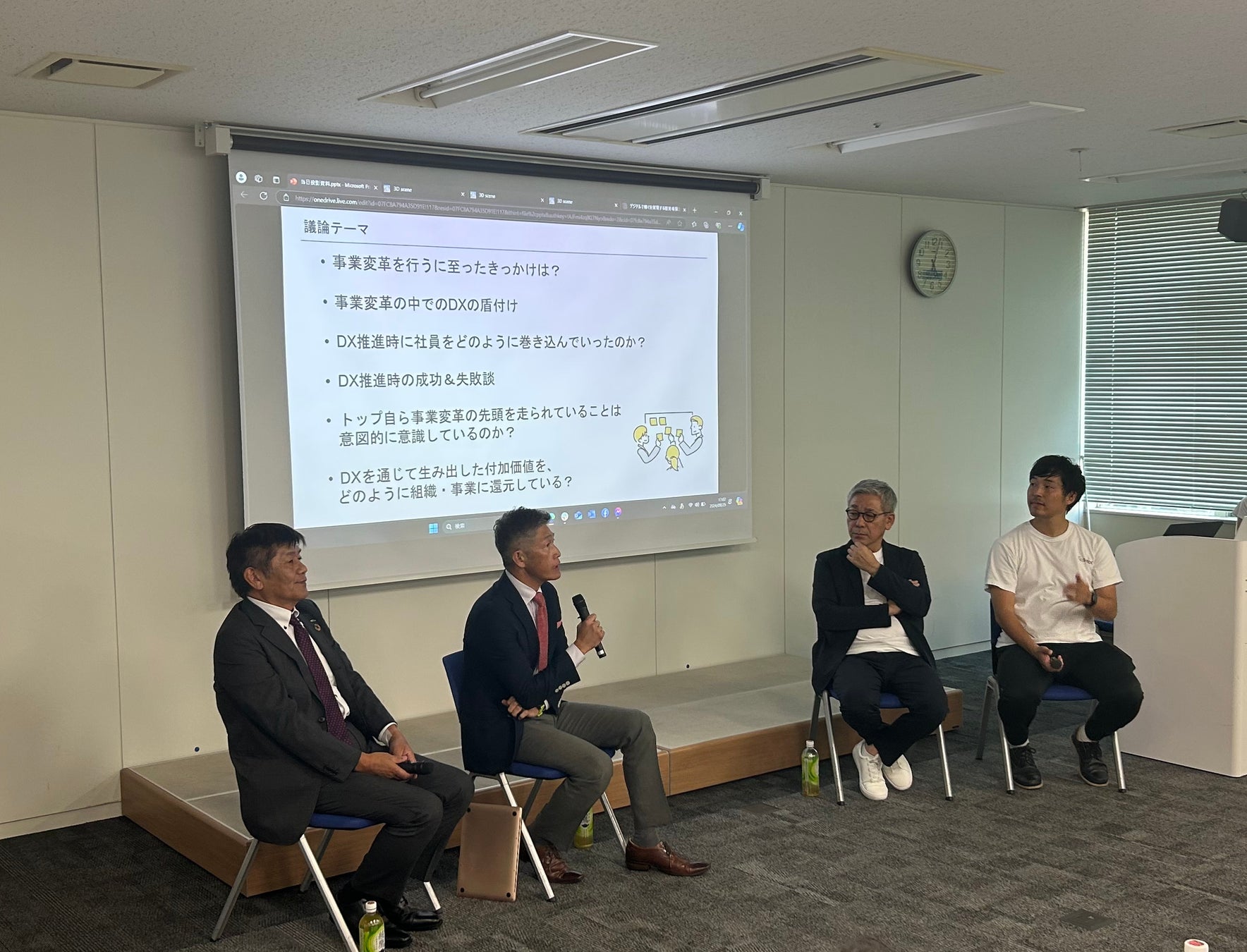 前半では、3名の経営者とBottoK坂田を交えたトークセッション形式で、事業変革を行うに至ったきっかけ、DX推進時に社員をどのように巻き込んでいったのか、DX推進時の成功秘話や今後の課題、トップ自ら事業変革の先頭を走る際に意図的に意識していることなど、現場の様子を交えたお話を伺いました。