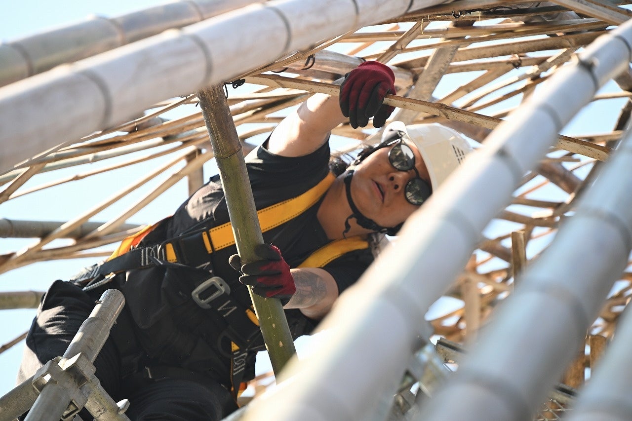 昨年、竹300本を使用し制作した「Love of '彩浜'」に続き、今年は5,000本の竹を使用してさらに巨大なアートを制作しました。ワン・ウェンチー氏とグローバル制作チームが8月に来日し、アドベンチャーワールド内で制作を開始。完成後の1年間、「いのちがつながる・踊る!」をテーマに、アート空間を活用したイベントを開催します。