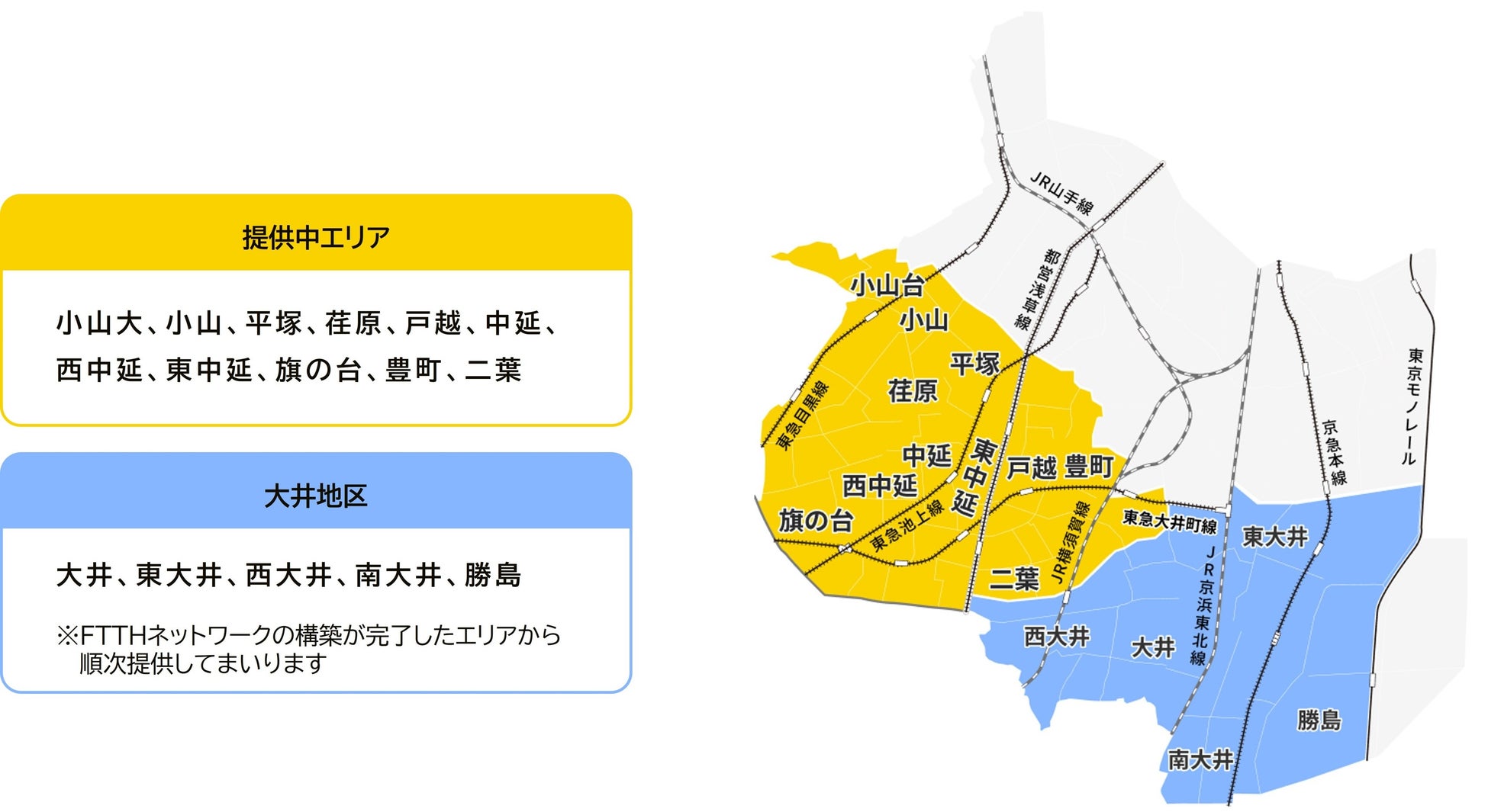 株式会社ケーブルテレビ品川(本社:東京都品川区 代表取締役執行役員社長:橋本夏代 以下、ケーブルテレビ品川)は、通信速度上り下り最大10Gbpsの光ファイバー(FTTH*1 )ネットワークを構築し、荏原地区よりサービス提供を開始しています。エリアを拡大して、大井地区にて、5月1日より順次、サービスの提供を開始いたします。