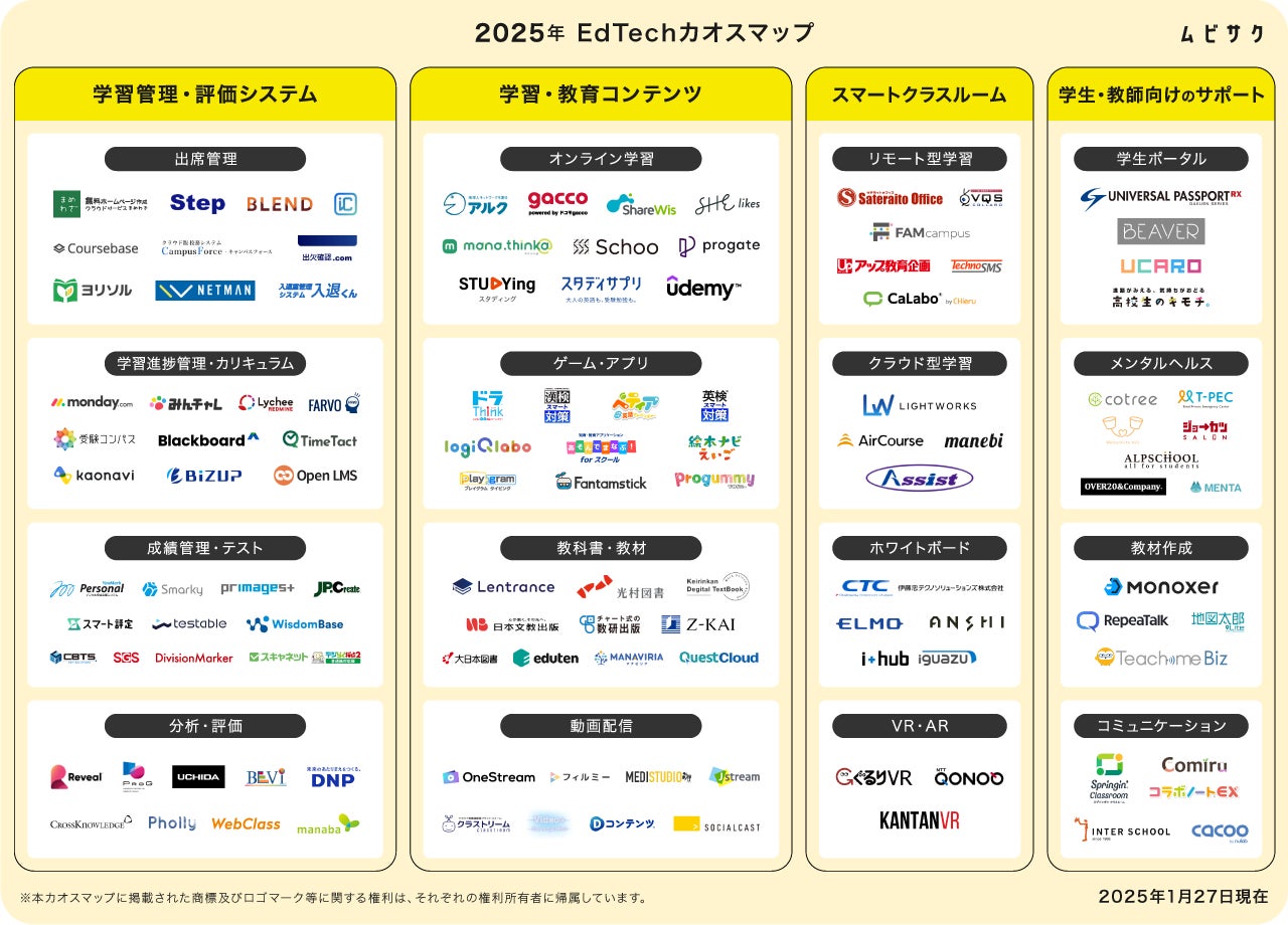 2025年版「EdTechカオスマップ」をムビサクが公開!教育コンテンツから学習管理システム、スマートクラスルームまで掲載